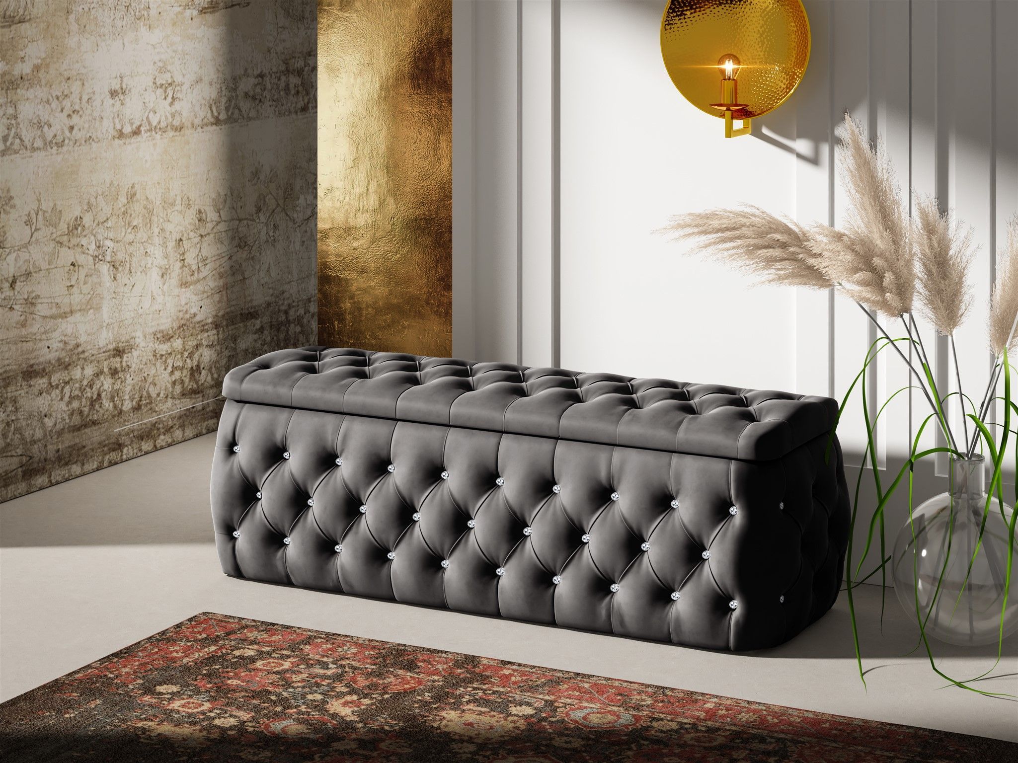 Polsterhocker mit Stauraum Betthocker SEVRA 140x50x45 cm Elisa Velvet Anthrazit