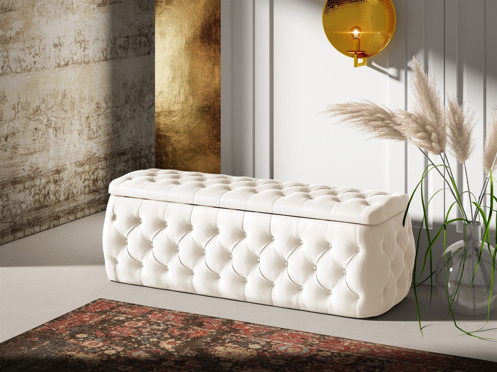 Polsterhocker mit Stauraum Ernesto 140x50x45 cm Elisa Velvet Cremeweiß