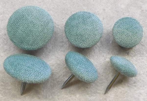 Polsterknöpfe mit Nagel mit Mikrofaser bezogen Bezugsstoff: Mikrofaser Polsterstoff Farbe: Mint Nagellänge ca. 17mm Jeder Knopf wird von uns einzeln gefertigt und geprüft. Nagel für die Montage ist integriert. Passende Zubehör, Gegenknöpfe, Knopffaden usw. finden Sie auch in unserem Shop. Durch die digitale Darstellung und Verarbeitung kann es zu Farbunterschieden gegenüber den Fotos kommen.