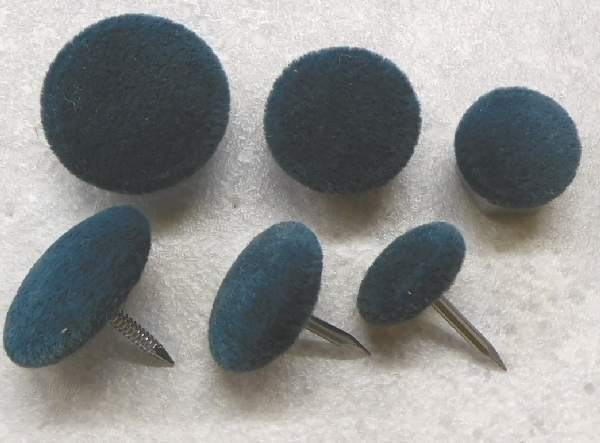 Polsterknöpfe mit Nagel mit Mikrofaser bezogen Bezugsstoff: Mikrofaser Polsterstoff Farbe: Blaugrün Nagellänge ca. 17mm Jeder Knopf wird von uns einzeln gefertigt und geprüft. Nagel für die Montage ist integriert. Passende Zubehör, Gegenknöpfe, Knopffaden usw. finden Sie auch in unserem Shop. Durch die digitale Darstellung und Verarbeitung kann es zu Farbunterschieden gegenüber den Fotos kommen.