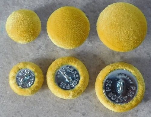 Polsterknöpfe mit Öse mit Mikrofaser bezogen Bezugsstoff: Mikrofaser Polsterstoff Farbe: Gelb Jeder Knopf wird von uns einzeln gefertigt und geprüft. Öse für die Montage ist integriert. Passende Zubehör, Gegenknöpfe, Knopffaden usw. finden Sie auch in unserem Shop. Durch die digitale Darstellung und Verarbeitung kann es zu Farbunterschieden gegenüber den Fotos kommen.