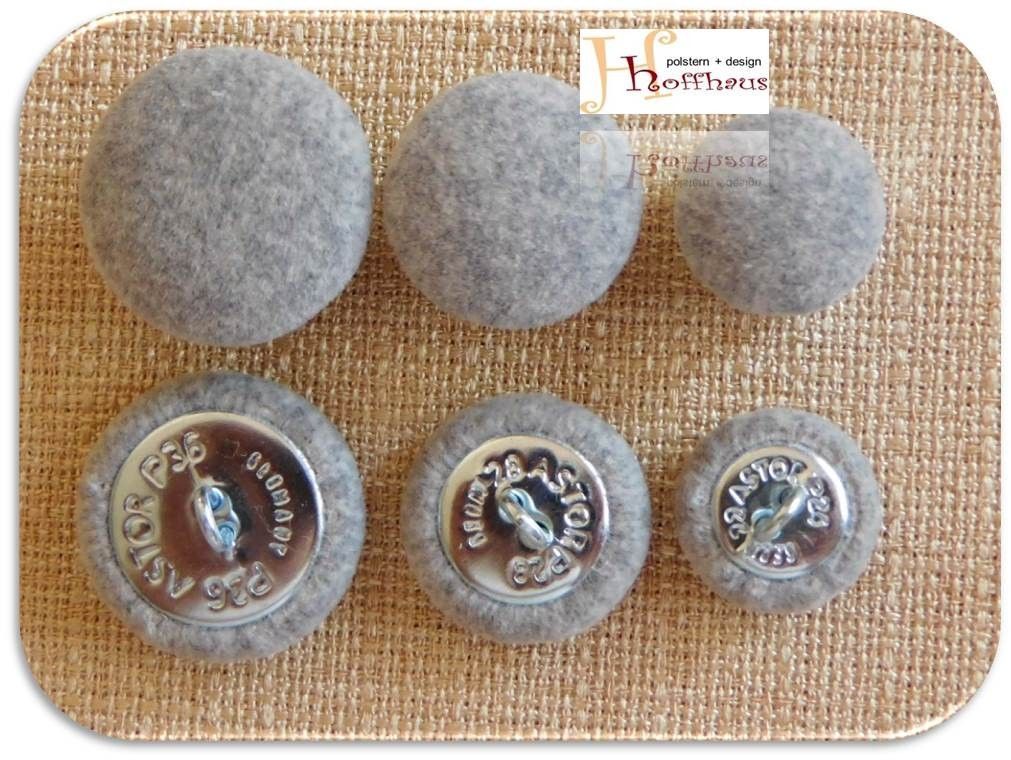 Polsterknöpfe mit Öse mit Mikrofaser bezogen Bezugsstoff: Mikrofaser Polsterstoff Farbe: Grau-Hellgrau Gesprenkelt Jeder Knopf wird von uns einzeln gefertigt und geprüft. Öse für die Montage ist integriert. Passende Zubehör, Gegenknöpfe, Knopffaden usw. finden Sie auch in unserem Shop. Durch die digitale Darstellung und Verarbeitung kann es zu Farbunterschieden gegenüber den Fotos kommen.