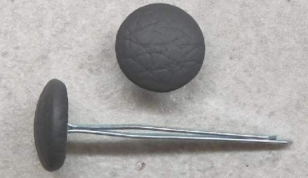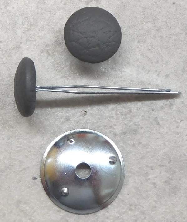 Polsterknöpfe mit Splint mit Kunstleder bezogen Bezugsstoff: Kunstleder für Möbel mit feiner Prägung Farbe: Anthrazit Knopfdurchmesser ca. 19mm Länge des Splintes: ca. 51mm Für die Montage mit festen Rücken (Spanplatte oder Ähnlichem) wird keine Gegenscheibe benötigt. Durch die digitale Darstellung und Verarbeitung kann es zu Farbunterschieden kommen.