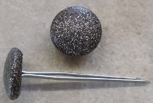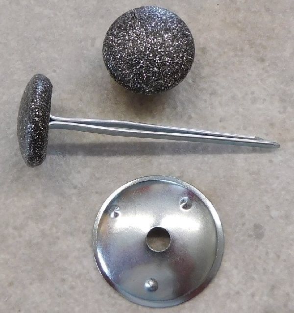 Polsterknöpfe mit Splint mit Kunstleder bezogen Bezugsstoff: Kunstleder für Möbel mit feiner Prägung Farbe: Grau Glitter Knopfdurchmesser ca. 19mm Länge des Splintes: ca. 51mm Für die Montage mit festen Rücken (Spanplatte oder Ähnlichem) wird keine Gegenscheibe benötigt. Durch die digitale Darstellung und Verarbeitung kann es zu Farbunterschieden kommen.