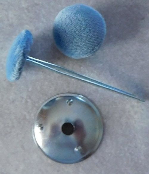 Polsterknöpfe mit Splint mit Mikrofaser bezogen Bezugsstoff: Mikrofaser Polsterstoff Farbe: Taube Knopfdurchmesser ca. 19mm Länge des Splintes: ca. 51mm Für die Montage mit festen Rücken (Spanplatte oder Ähnlichem) wird keine Gegenscheibe benötigt. Durch die digitale Darstellung und Verarbeitung kann es zu Farbunterschieden kommen.