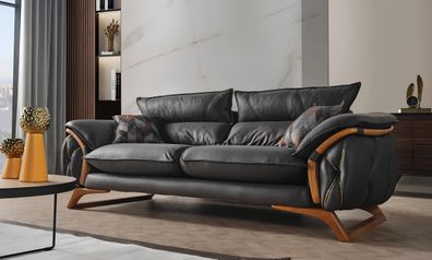 Schwarze Dreisitzcouch 3-Sitzer-Sofa Dreisitzgarnitur Dreisitzer Polstersofa