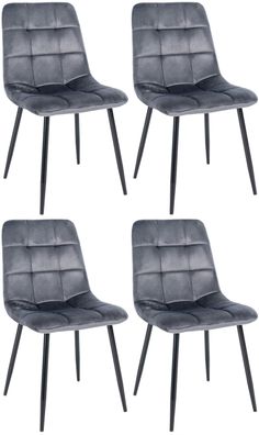 Esszimmerstühle VERA 4er Set Hellgrau Samt Polsterstühle Küchenstuhl Wohnzimmerstühle