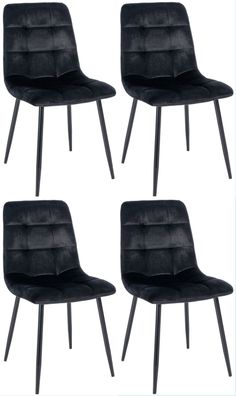 Esszimmerstühle VERA 4er Set Schwarz Samt Polsterstühle Küchenstuhl Wohnzimmerstühle
