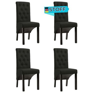Esszimmerstühle VEDA 4er Set Schwarz Stoff Polsterstühle Küchenstuhl Wohnzimmerstühle