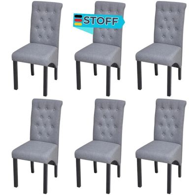 Esszimmerstühle VEDA 6er Set Hellgrau Stoff Polsterstühle Küchenstuhl