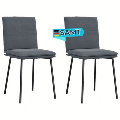 Esszimmerstühle VERA 2er Set Dunkelgrau Samt Polsterstühle Küchenstuhl