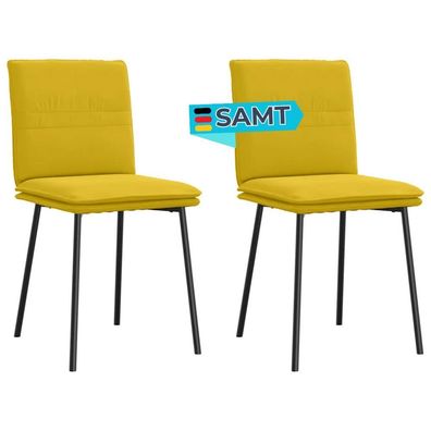 Esszimmerstühle VERA 2er Set Gelb Samt Polsterstühle Küchenstuhl Wohnzimmerstühle