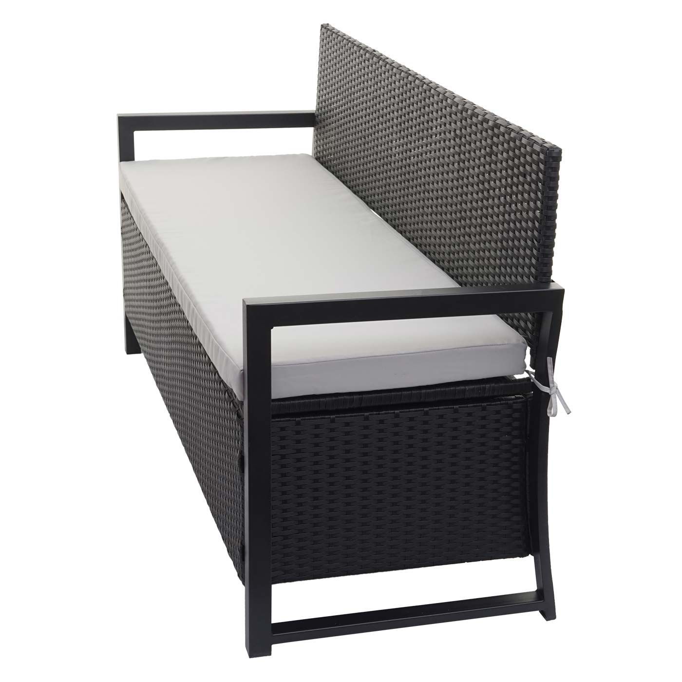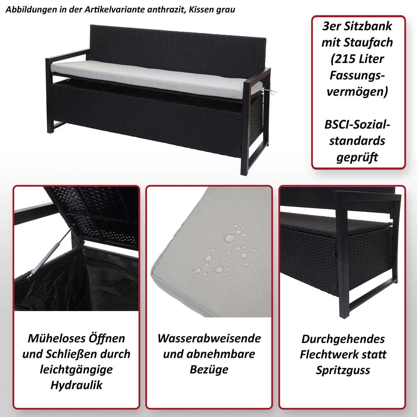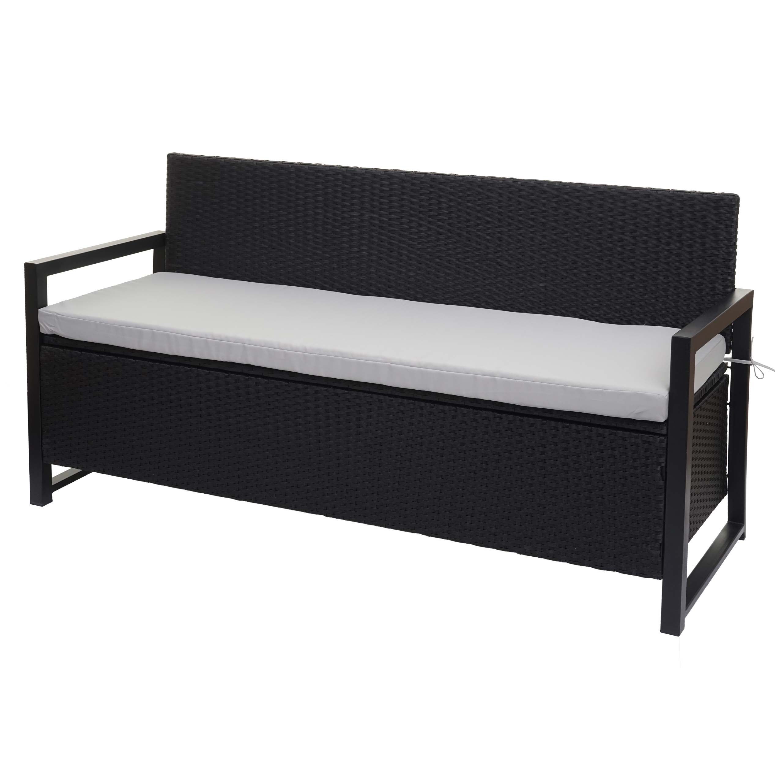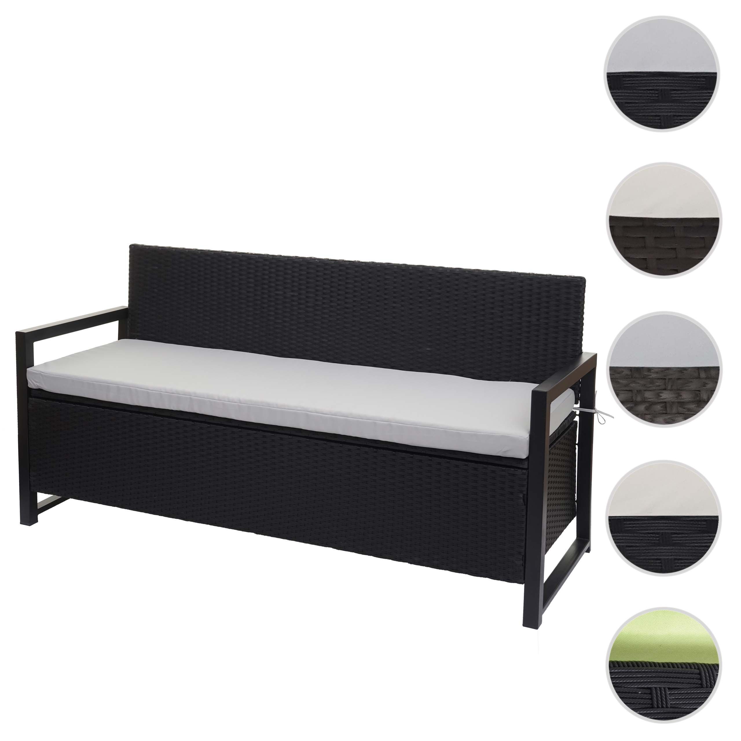 Mendler Poly-Rattan 3er Sitzbank HWC-F39, Gartenbank Truhenbank, Staufach Sitzkissen