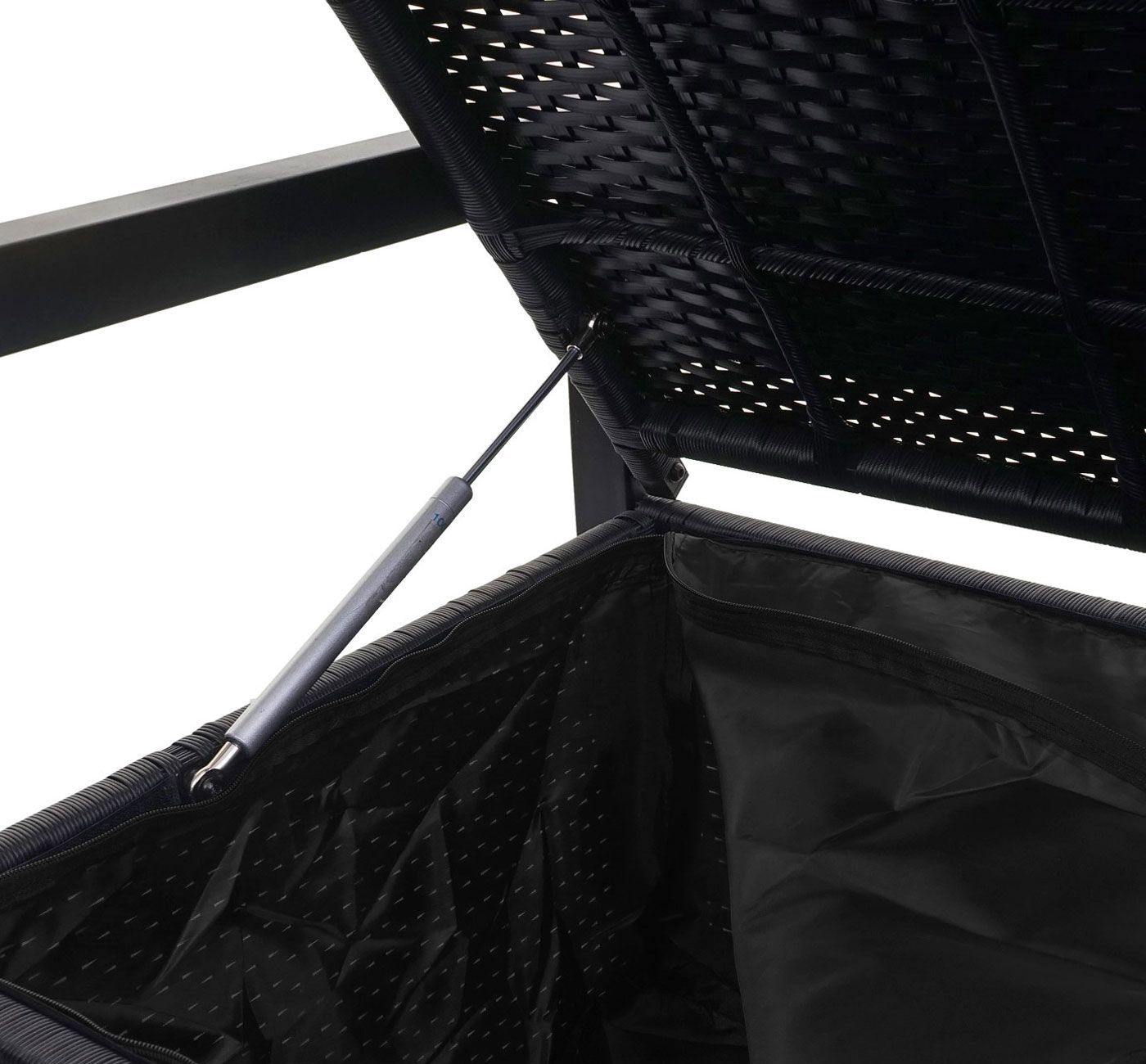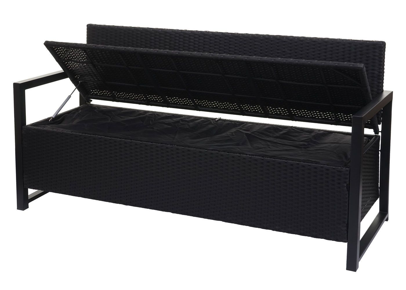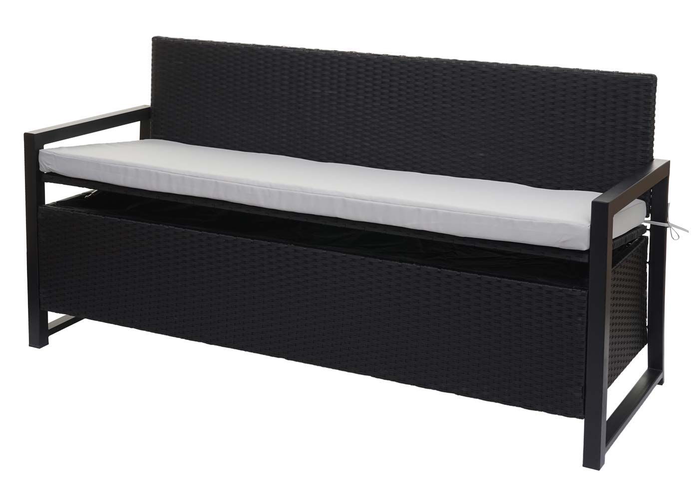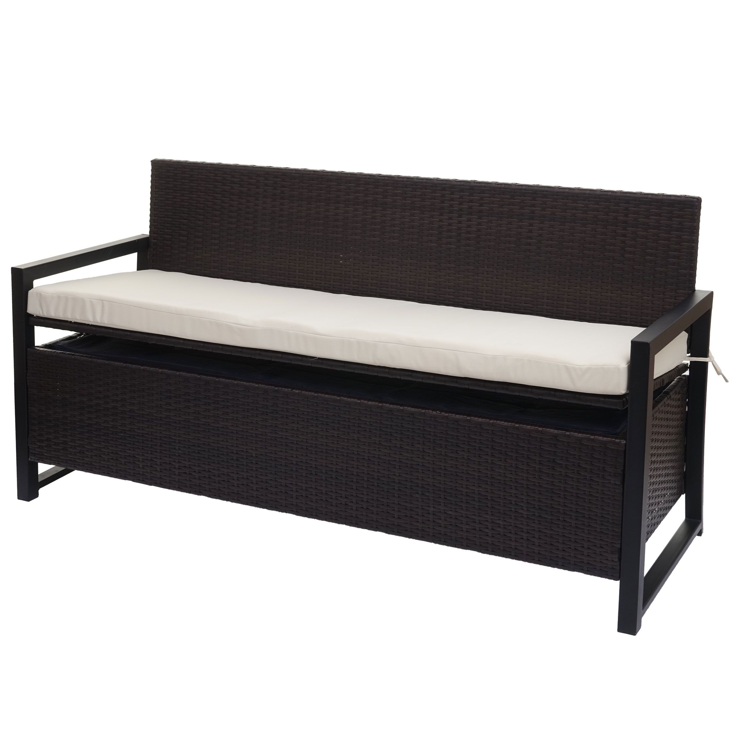 Mendler Poly-Rattan 3er Sitzbank HWC-F39, Gartenbank Truhenbank, Staufach Sitzkissen