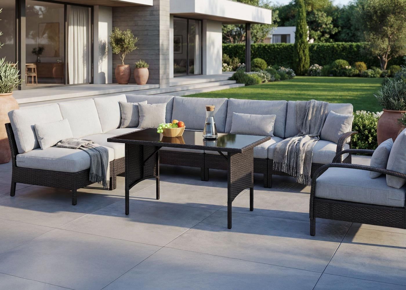 • Poly Rattan Sitzgruppe Poly Rattan Sitzgarnitur Grau Garten-Garnitur Set
