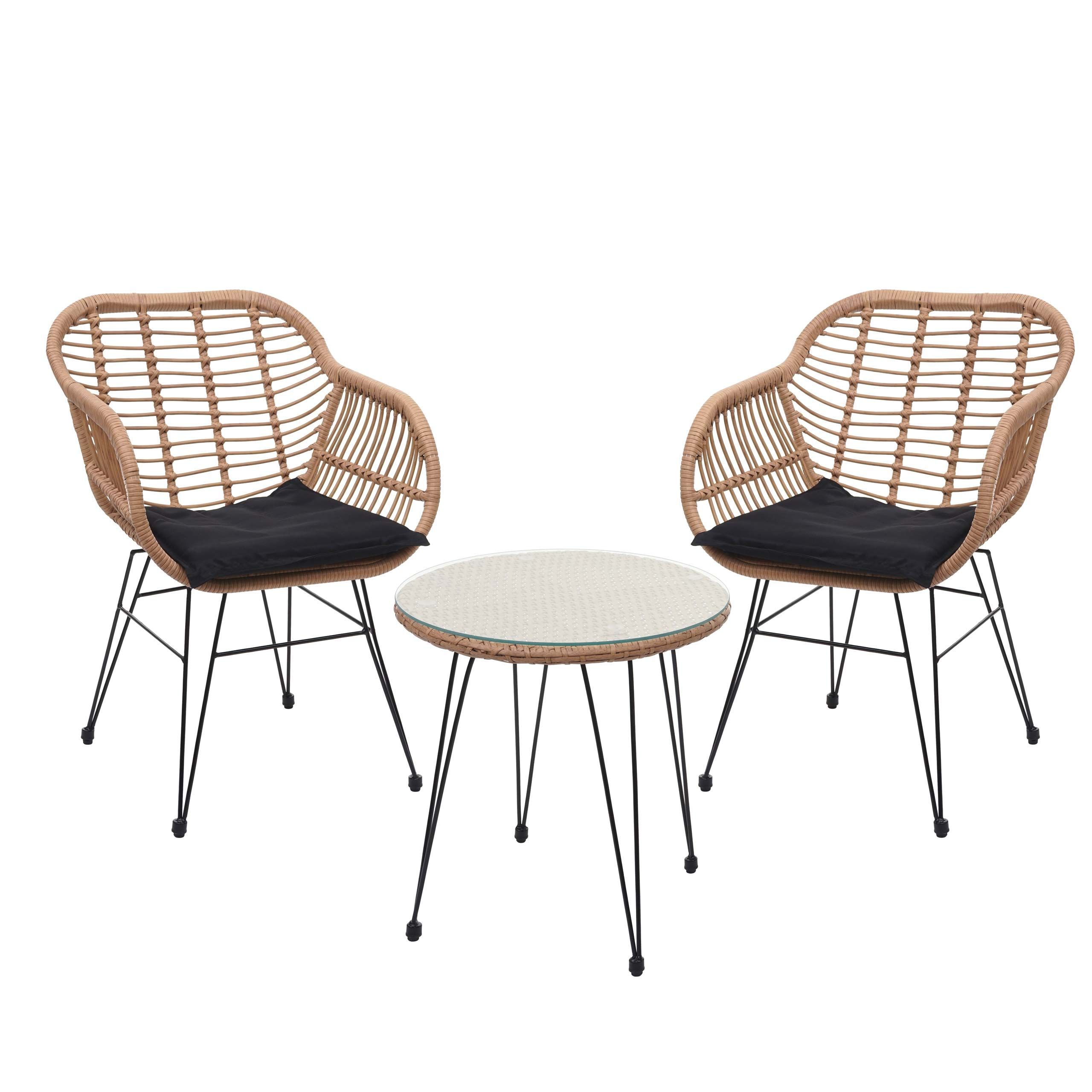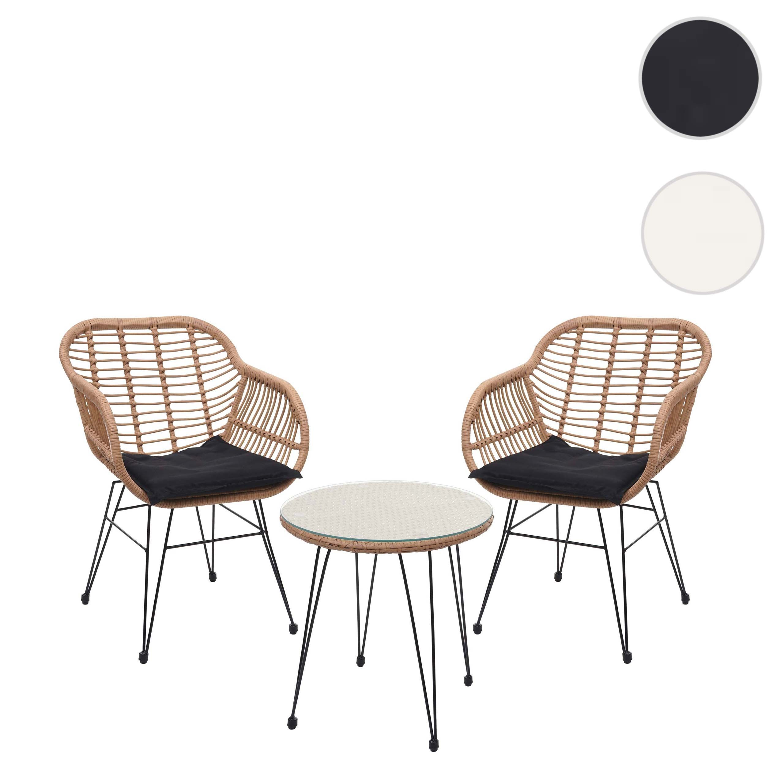 Mendler Poly-Rattan Garnitur HWC-G17, Balkon-Set Gartengarnitur Sitzgruppe Stuhl, Seil