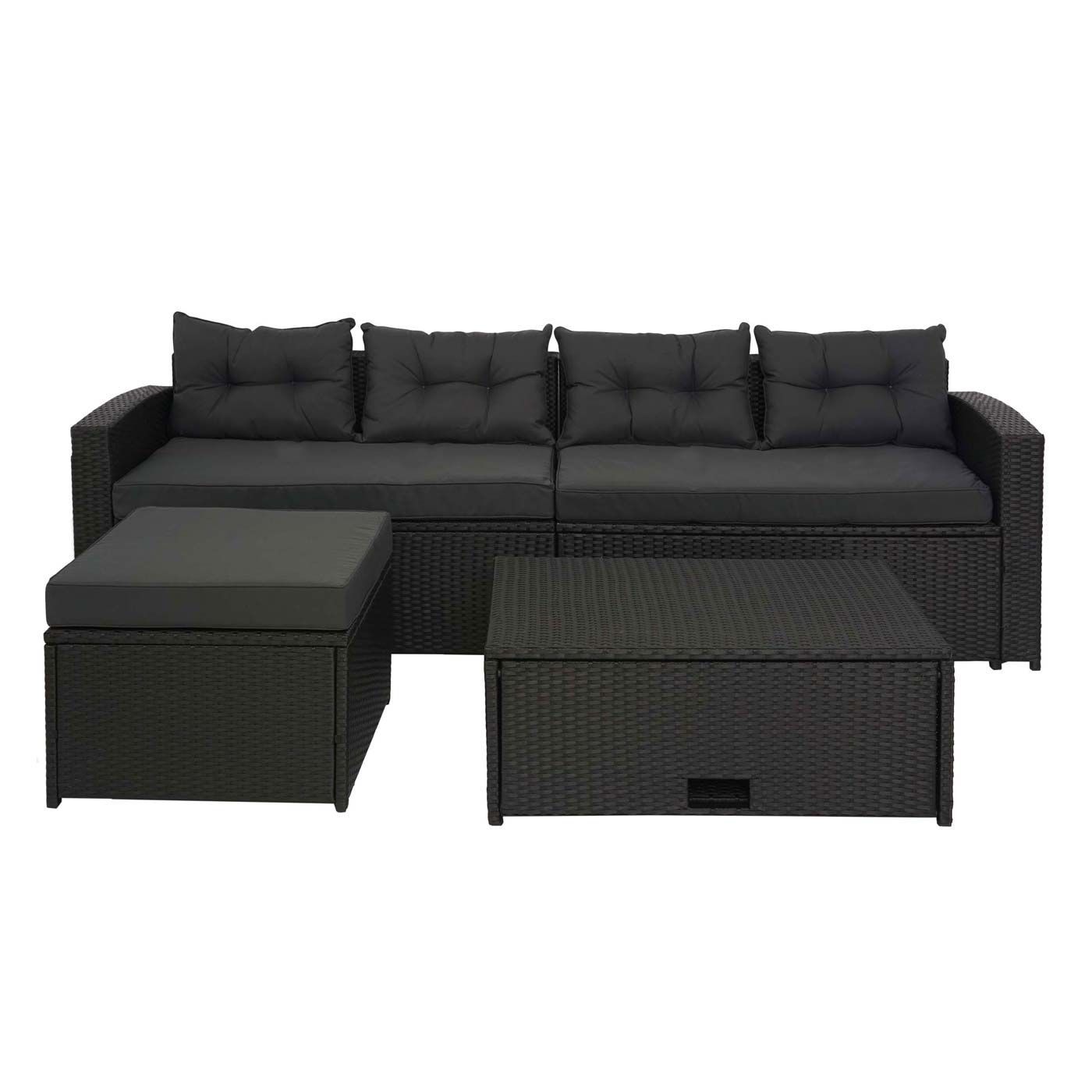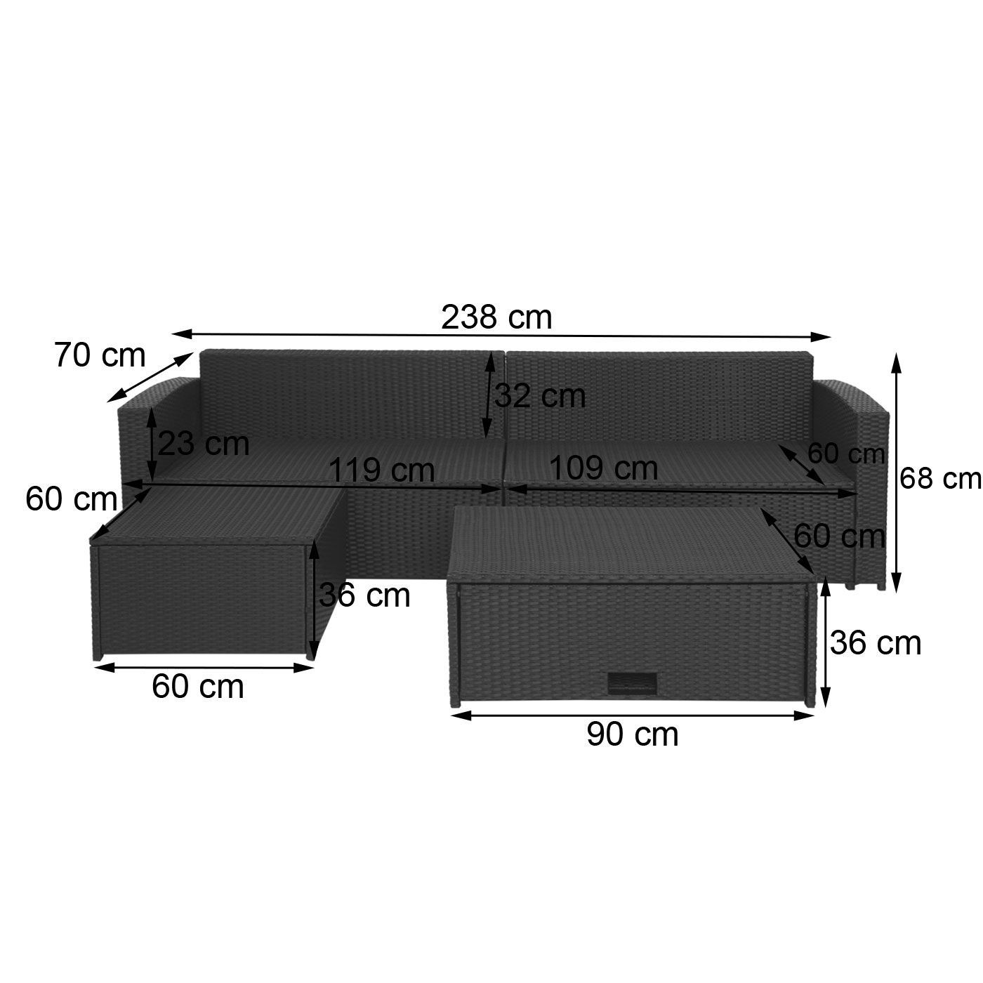 Mendler Poly-Rattan Garnitur HWC-J34, Balkon-/Garten-/Lounge-Set Sitzgruppe Sofa, Staufach
