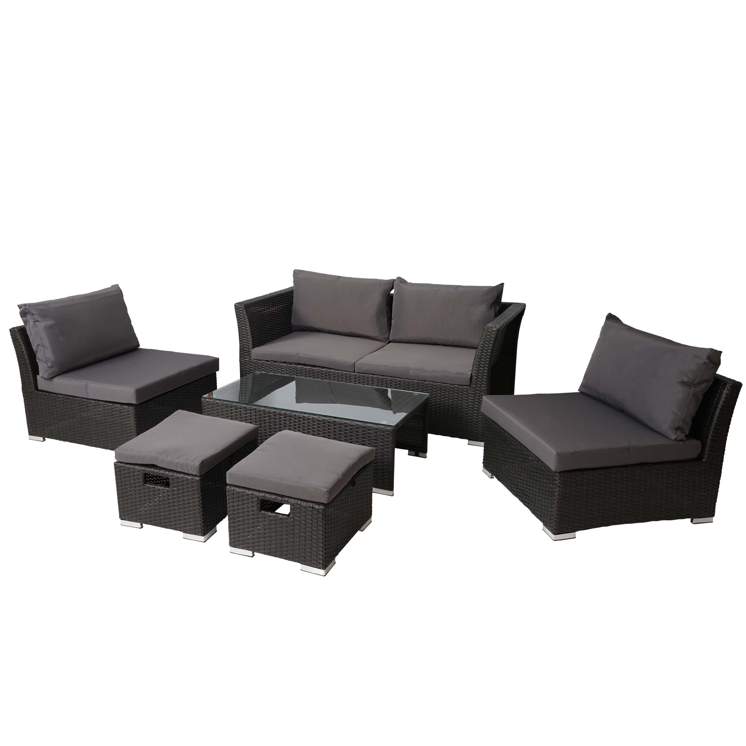 Mendler Poly-Rattan Garnitur HWC-J36, Balkon-/Garten-/Lounge-Set Sitzgruppe Sofa