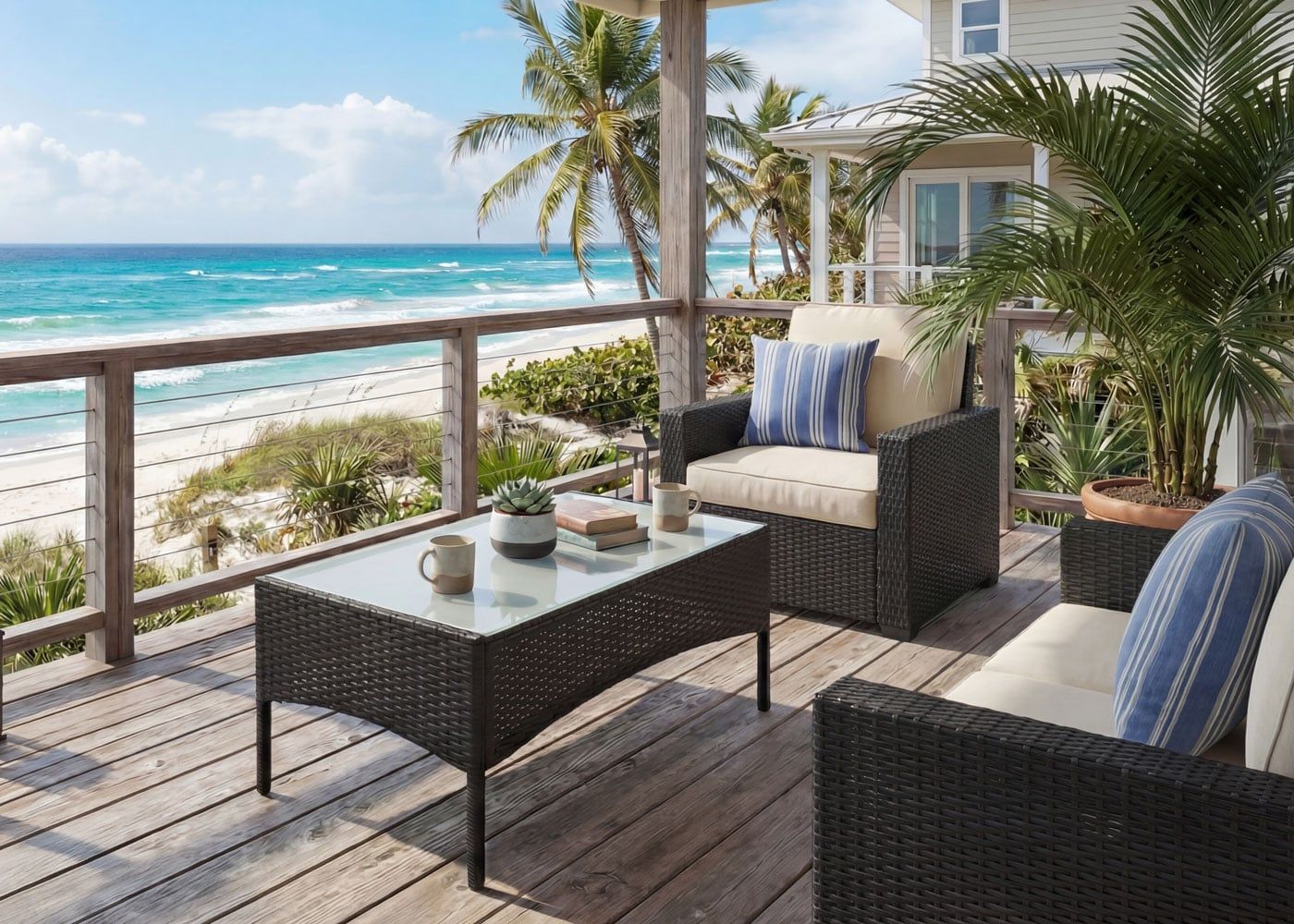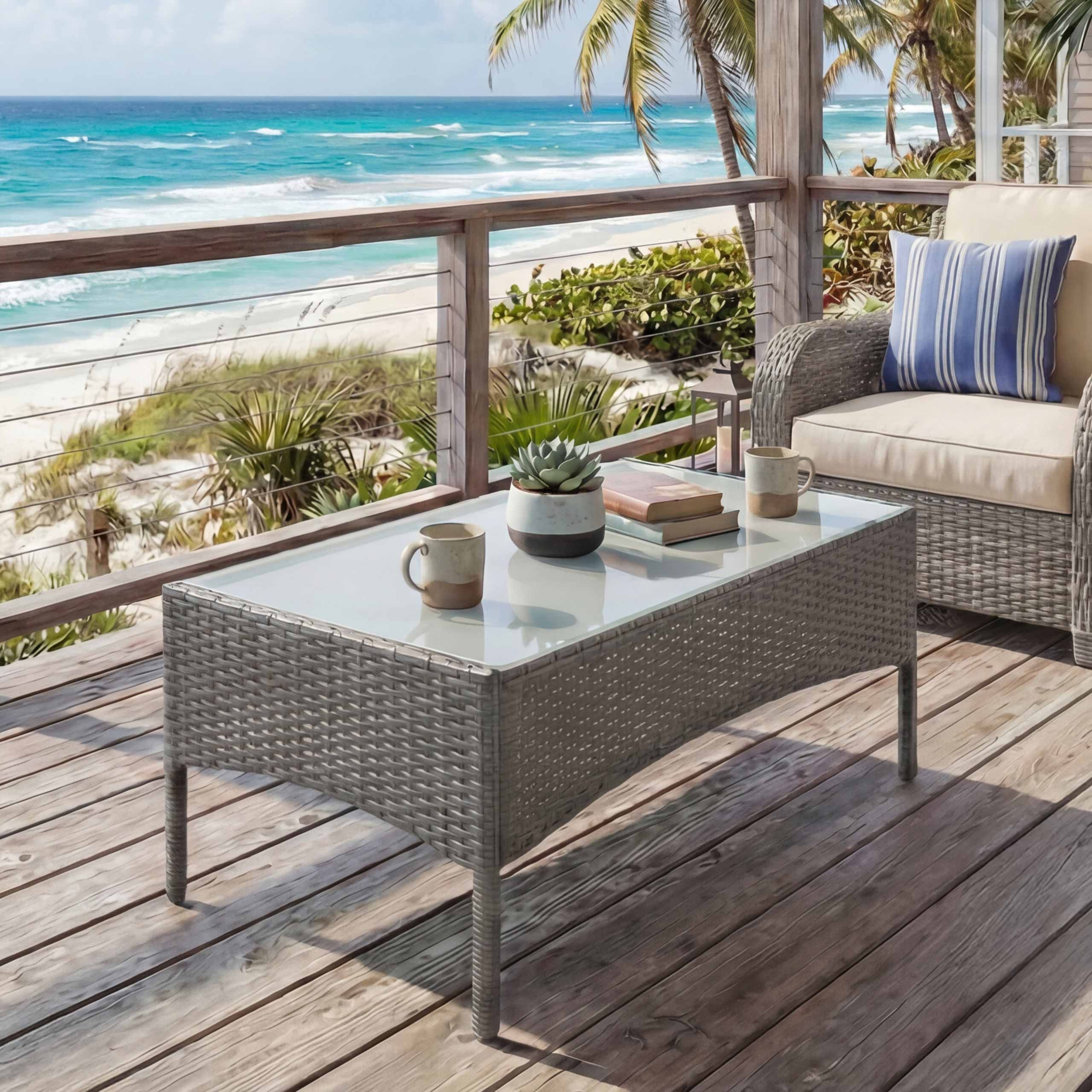 Mendler Poly-Rattan Gartentisch Halden, Beistelltisch Tisch mit Glasplatte