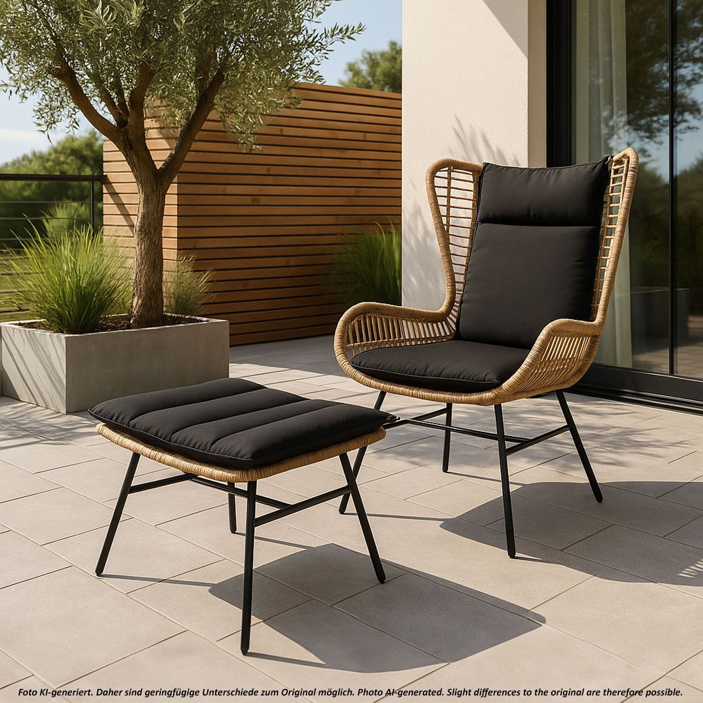 Mendler Poly-Rattan Set HWC-G17b, Balkon-Set Gartengarnitur Stuhl+Hocker Sessel, Seil