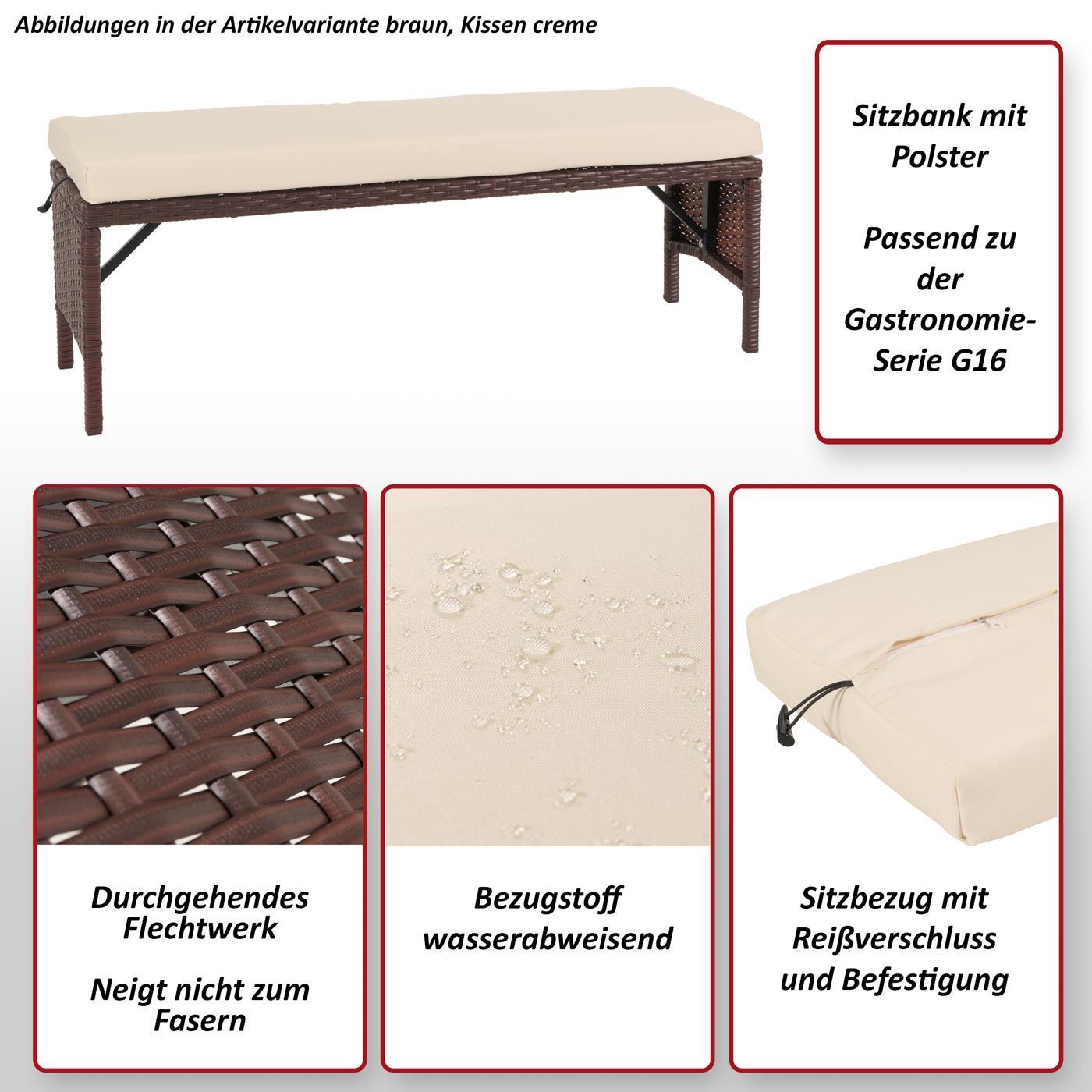 Mendler Poly-Rattan Sitzbank HWC-G16, Gartenbank Rattanbank, Gastronomie 112cm