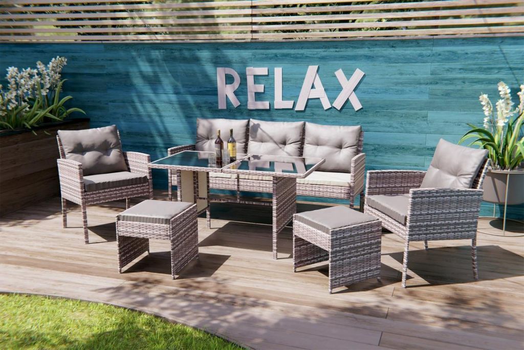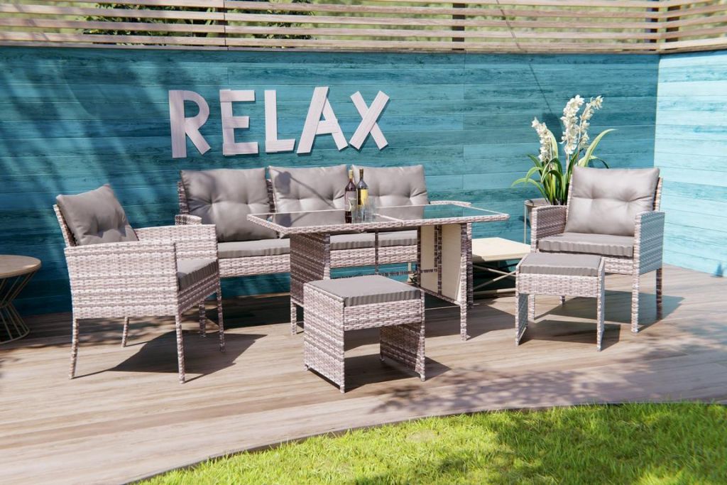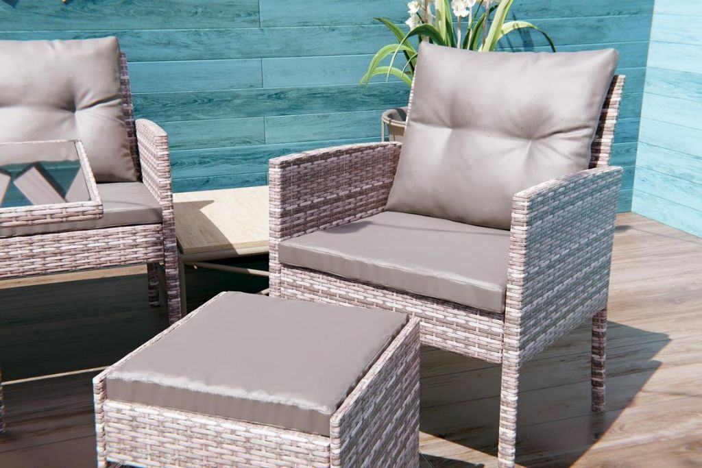Poly Rattan Sitzgruppe Poly Rattan Sitzgarnitur Grau Garten-Garnitur Set