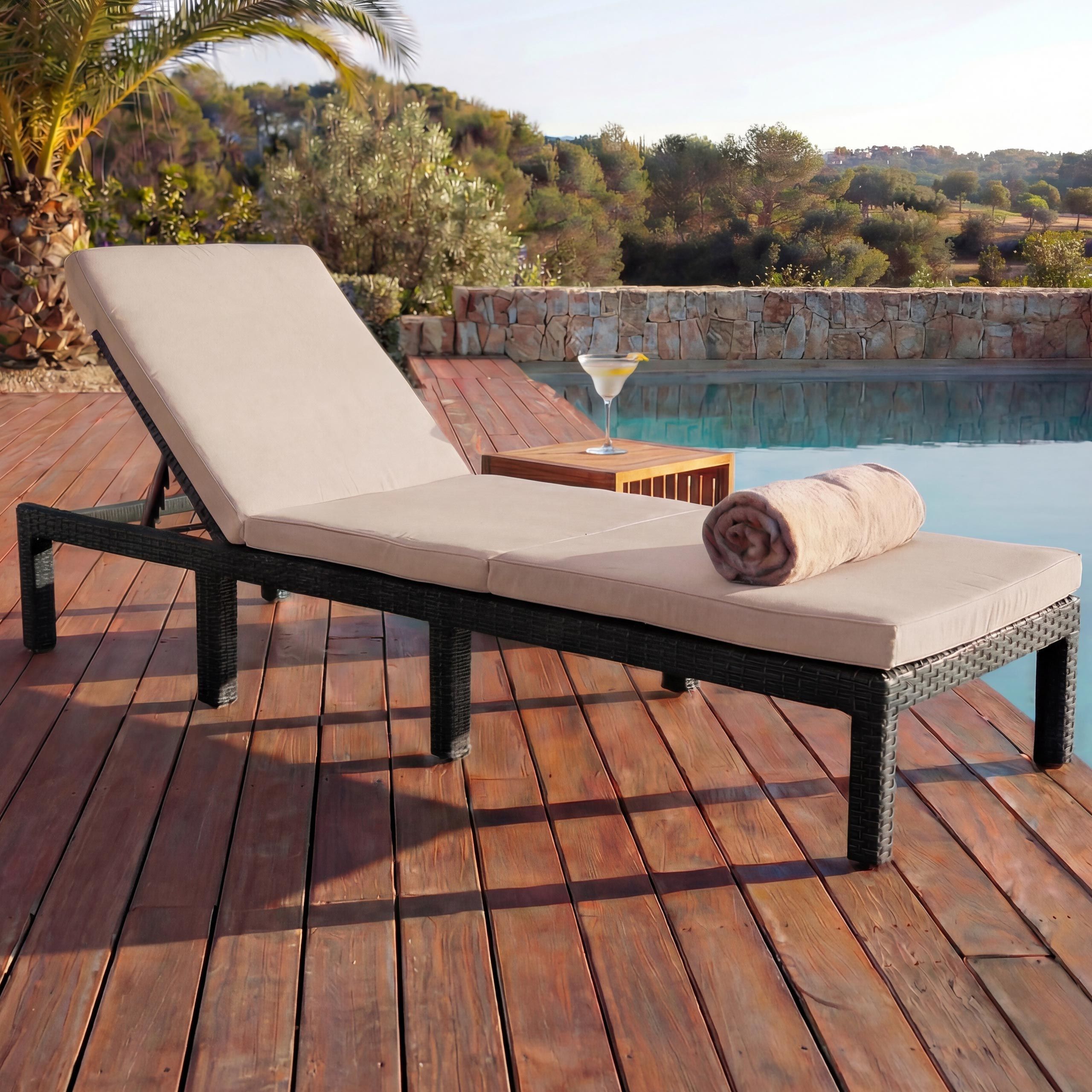 • vidaXL Sonnenliege mit Auflage Poly Rattan Schwarz