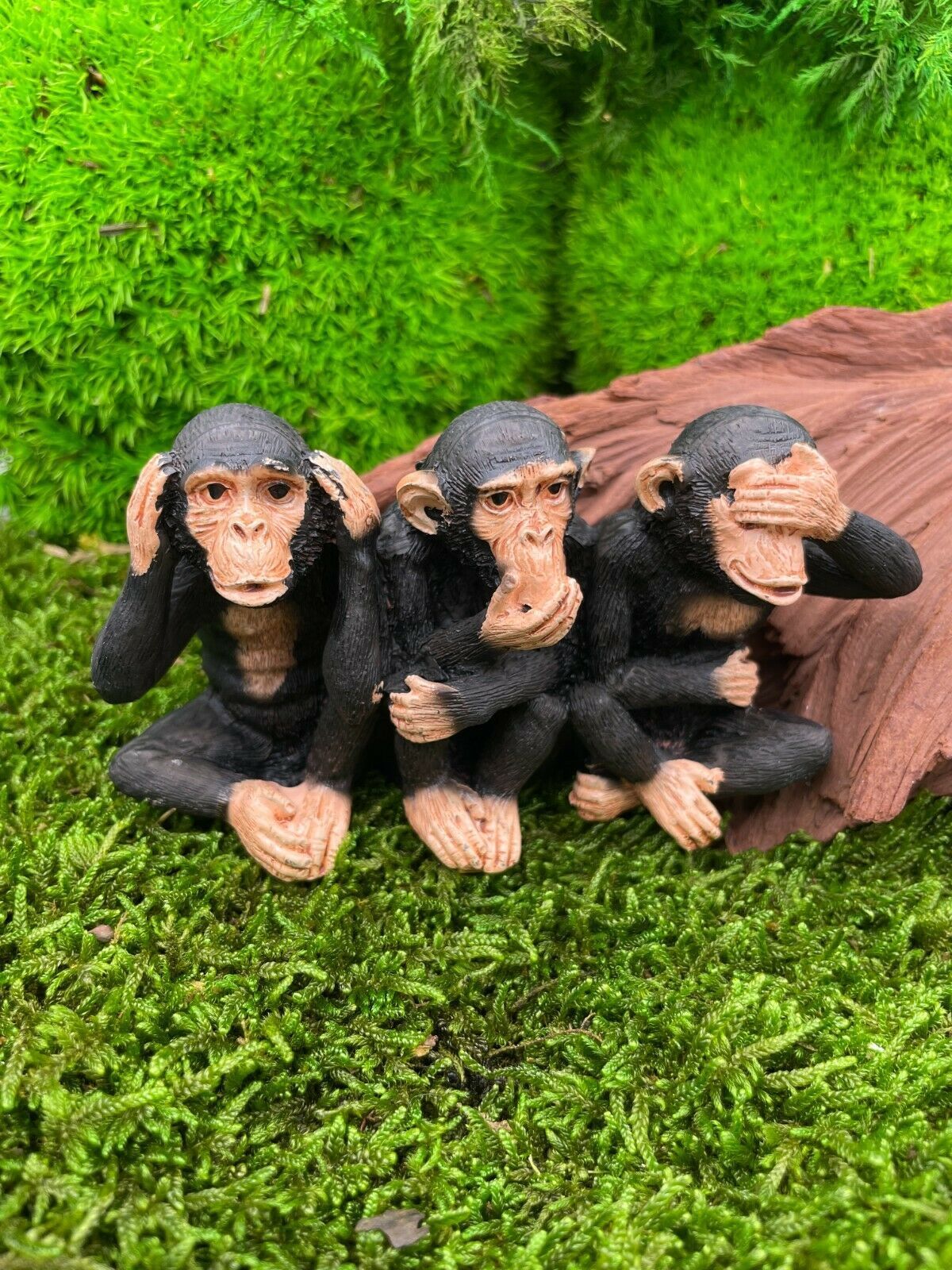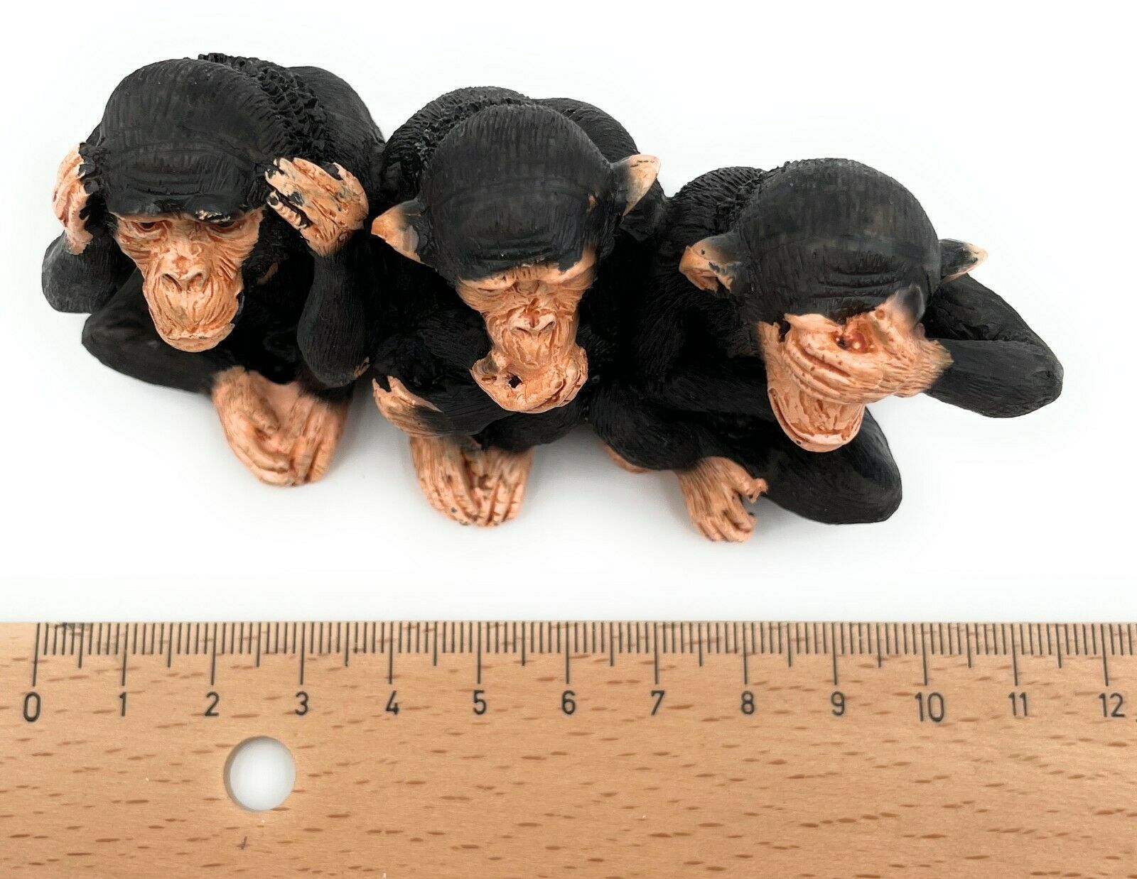 Polyresin Figur drei Affen Shimpanse Tier Dekofigur aus Polyresin Schwarz