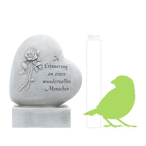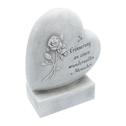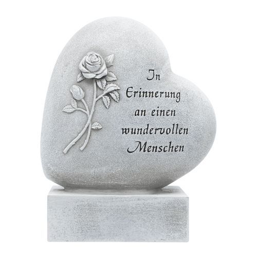 Polyresin-Herz auf Fuß mit Rose & Trauer-Spruch, 13,8x6,5xh18cm, Grabschmuck, Gr