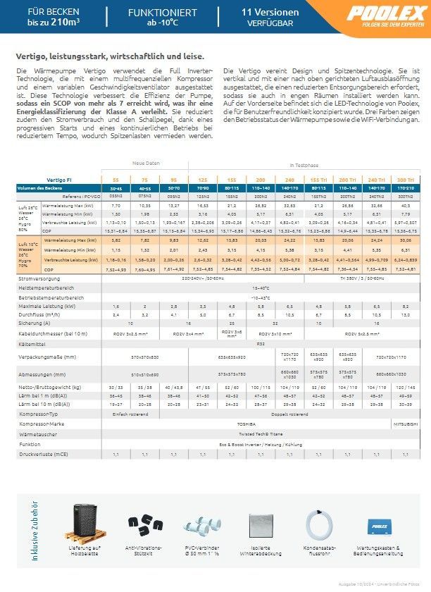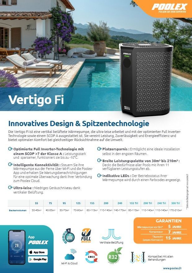 • Poolex Vertigo Fi2 Poolheizung Wärmepumpe 5,5kW Vertikal PC-VGO055N2