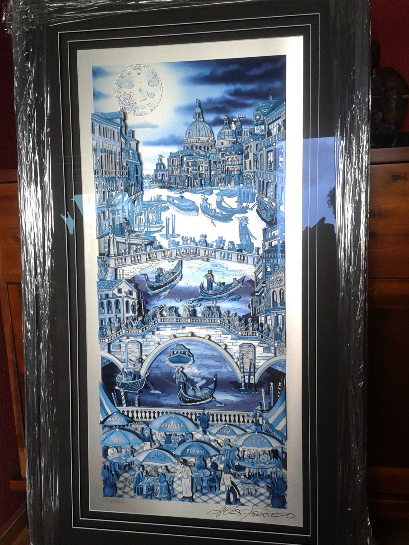 Pop Art 3D Bild Charles Fazzino Midnight in Venice Venedig AP blue (nur max. 75 Ex.)