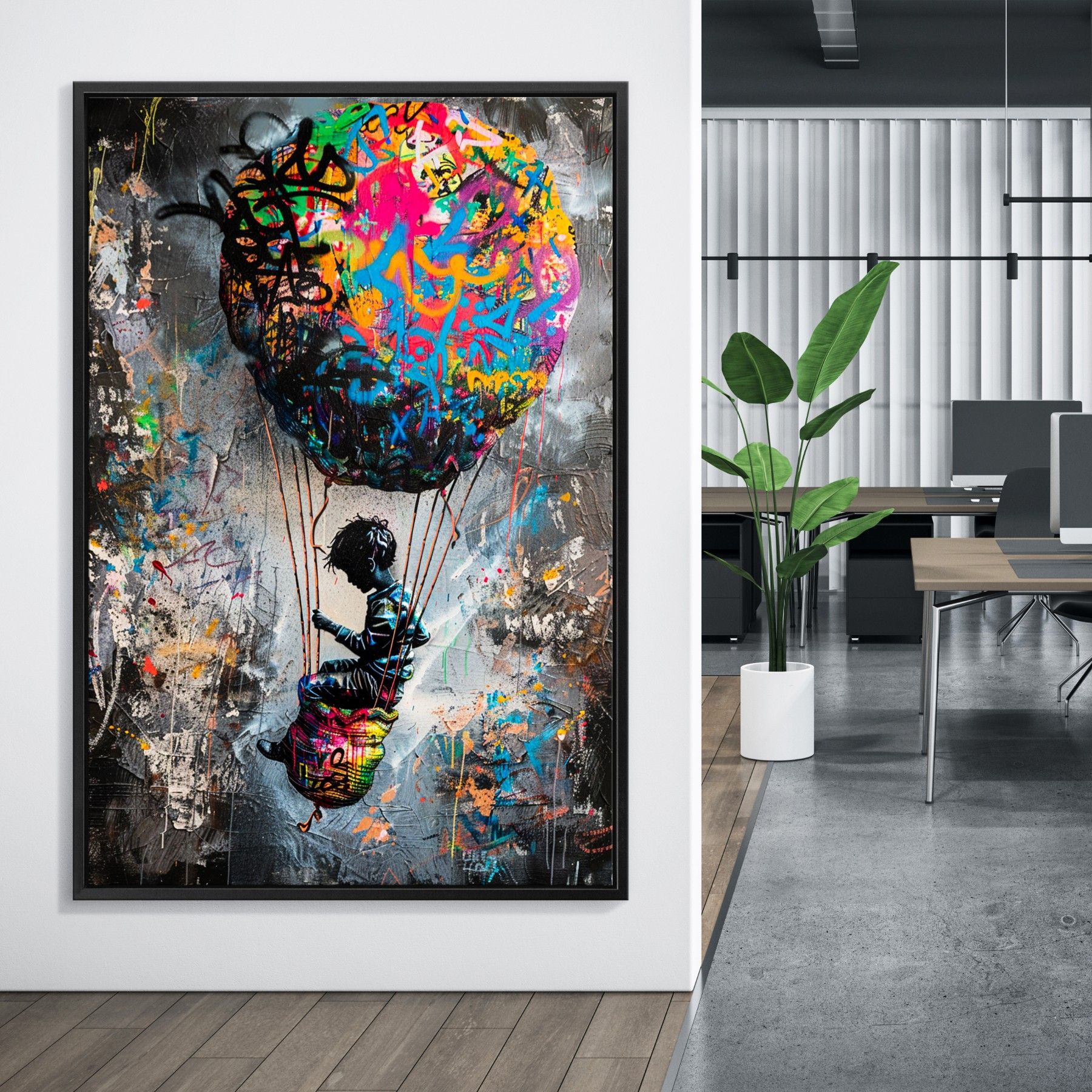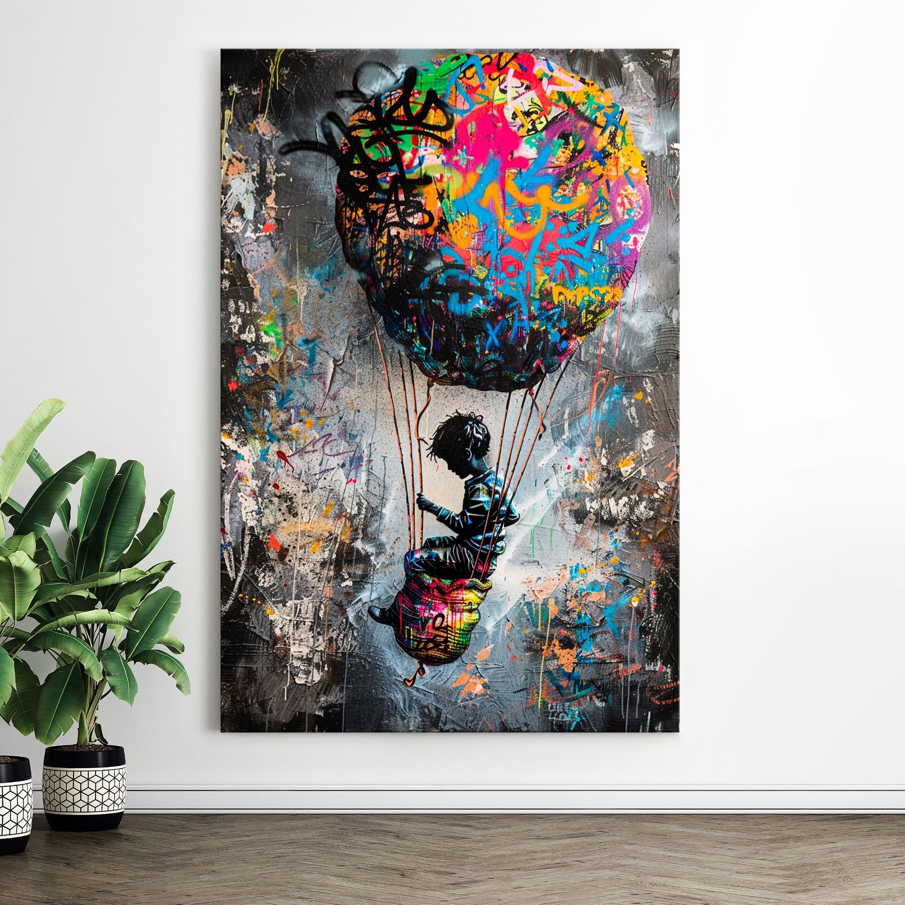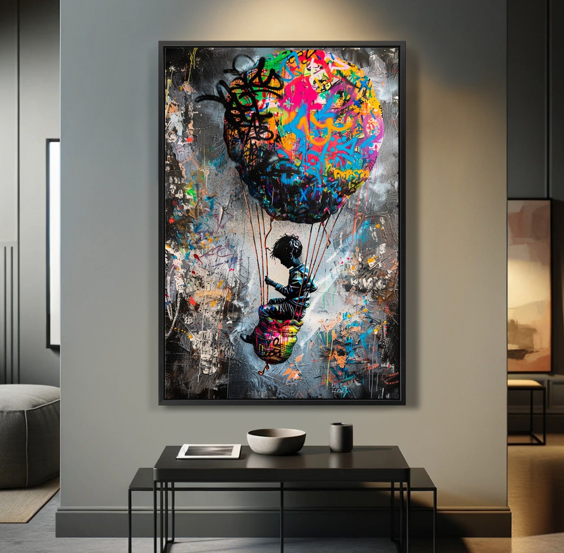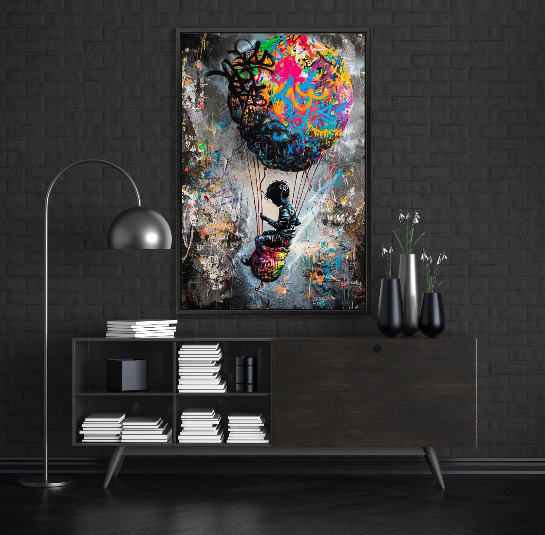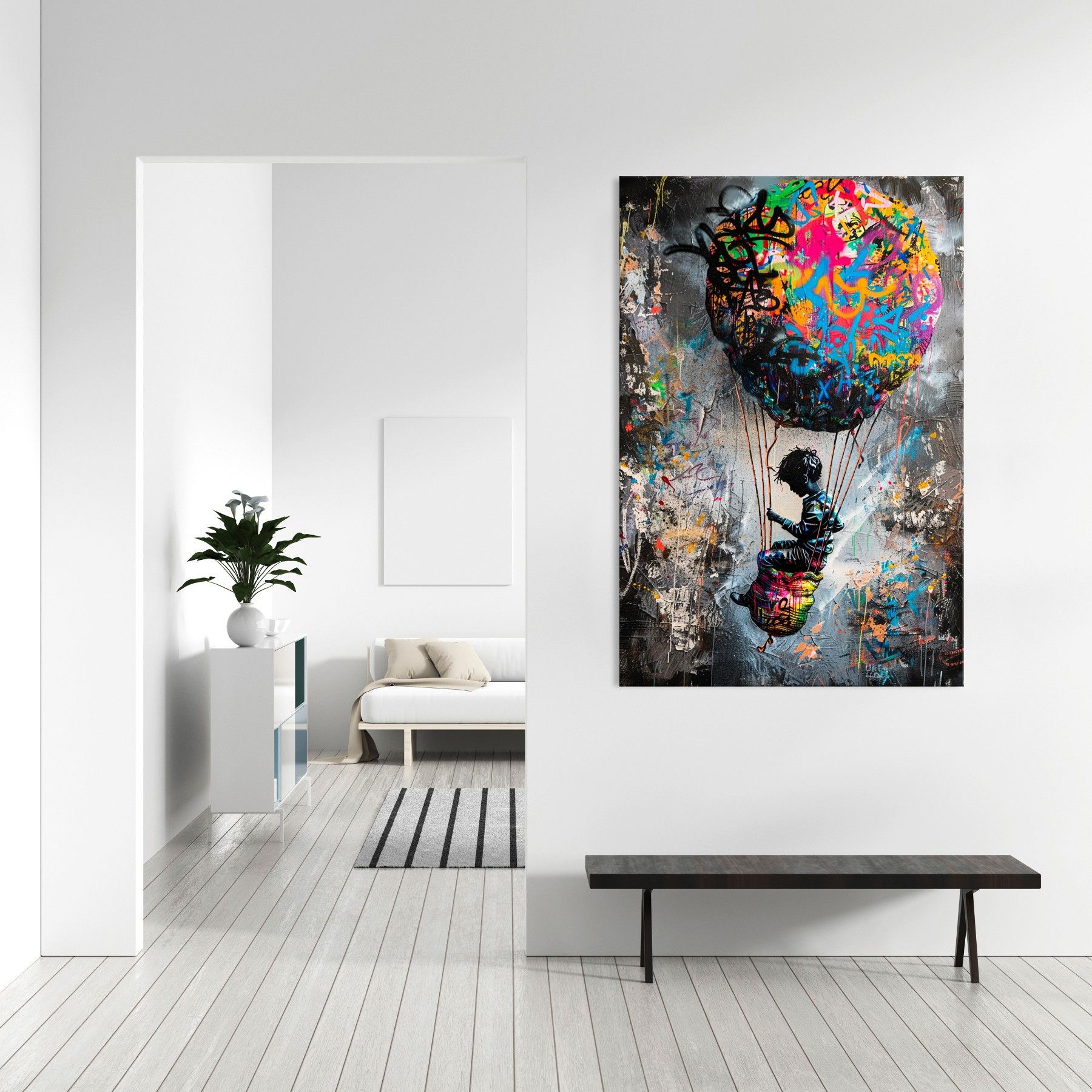Pop Art Kunst Wandbild, Banksy Kind mit Ballon, Leinwand, Acrylglas oder Poster