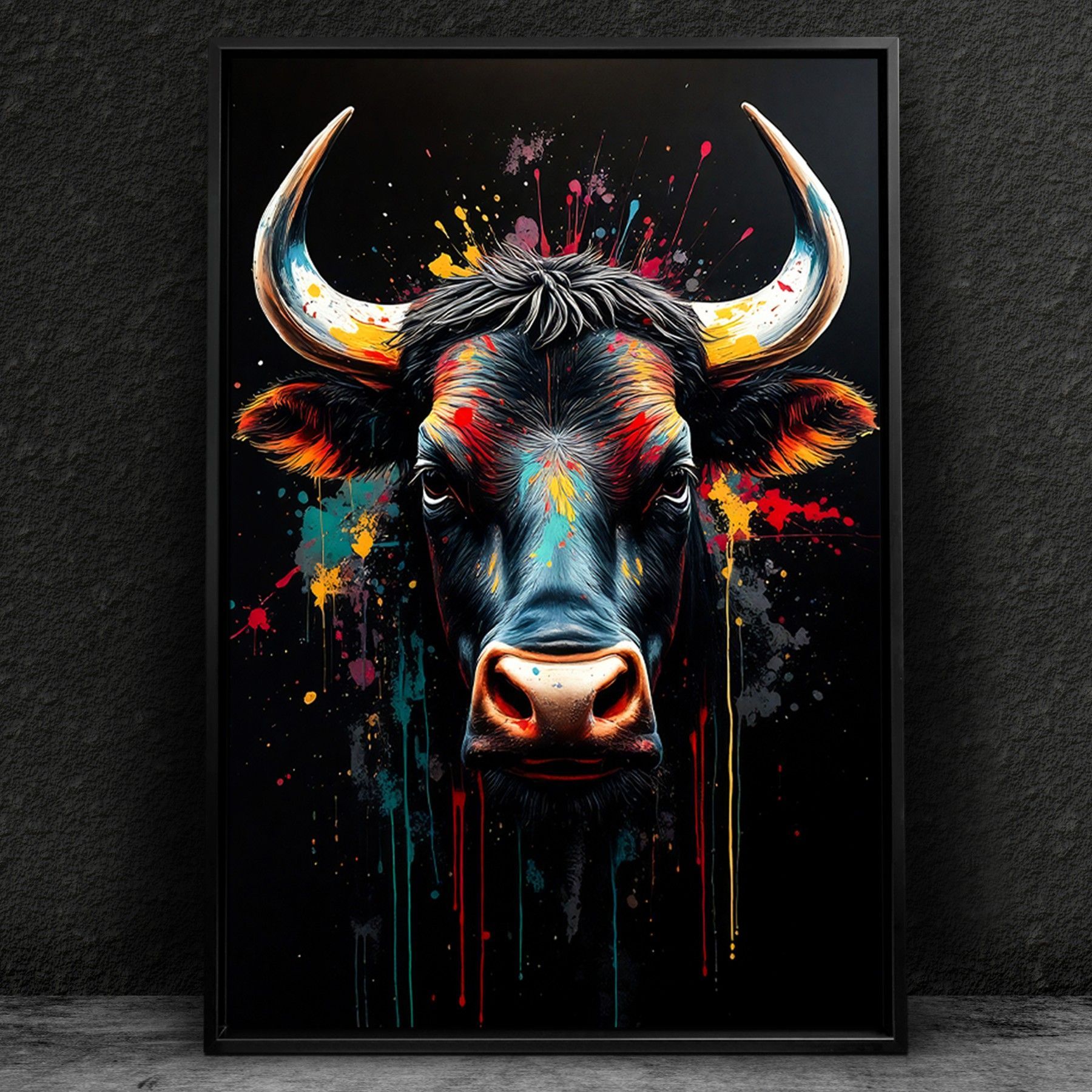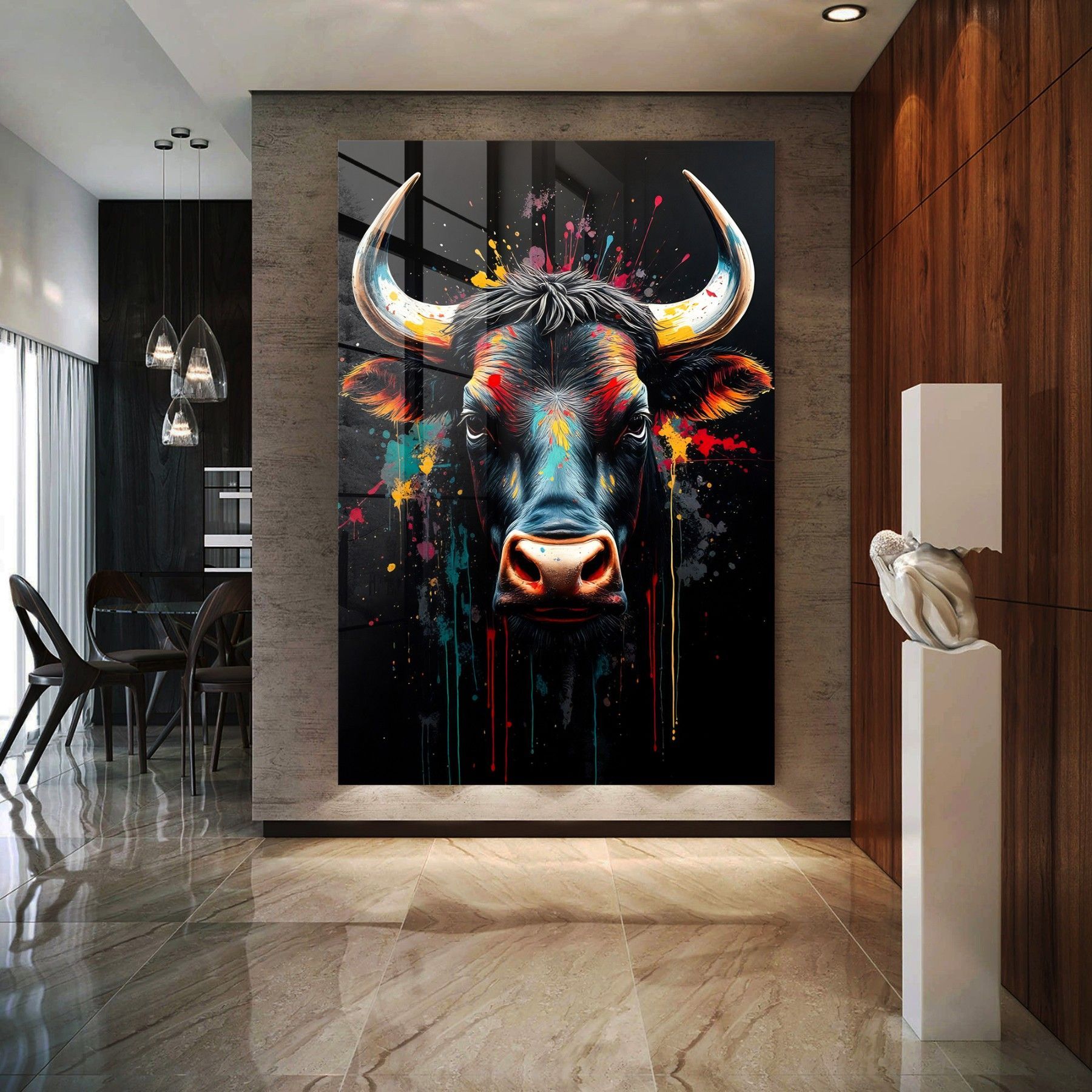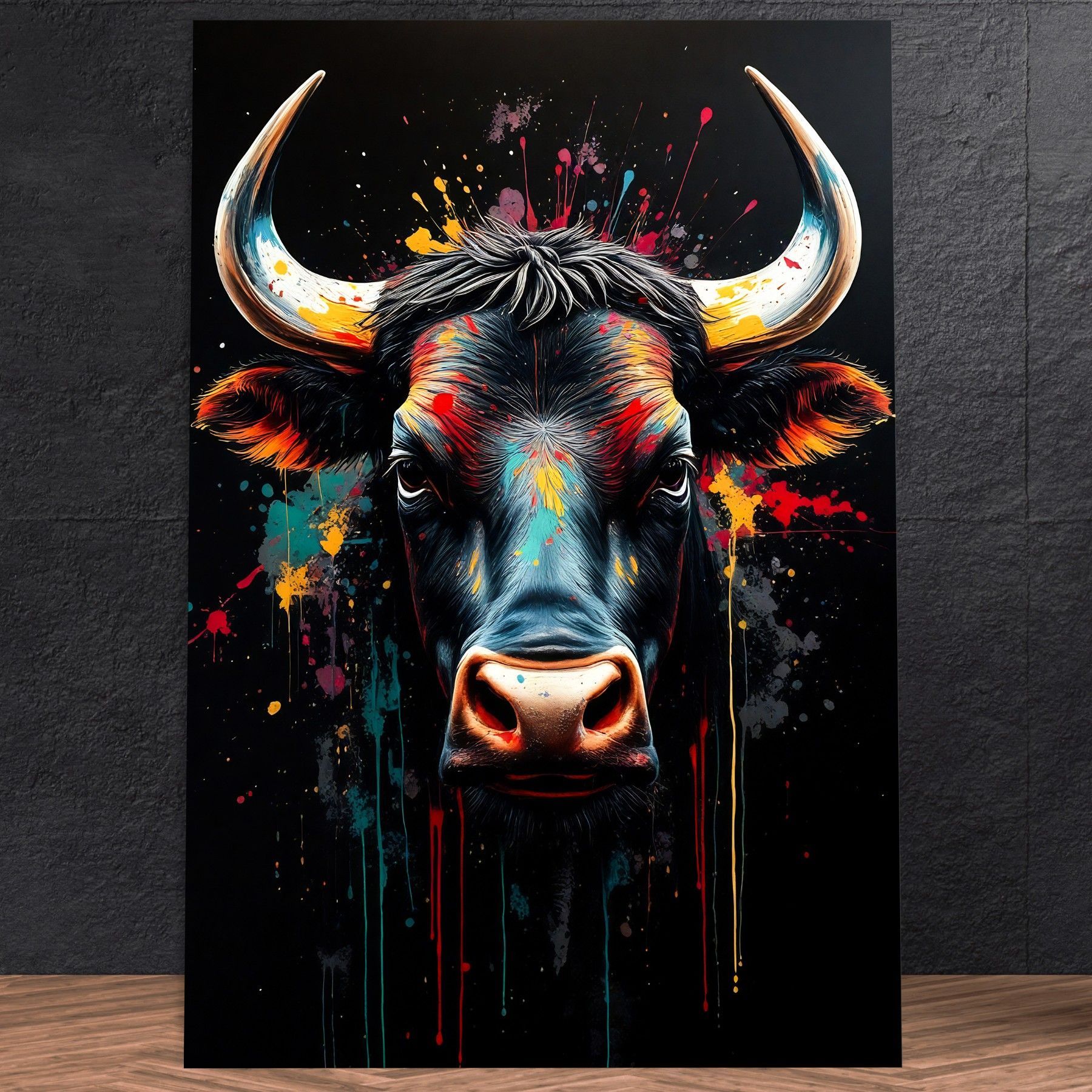 Pop Art Wandbild, Stier - Bullen Tier Acrylglas, Leinwand, Poster Kunst Art