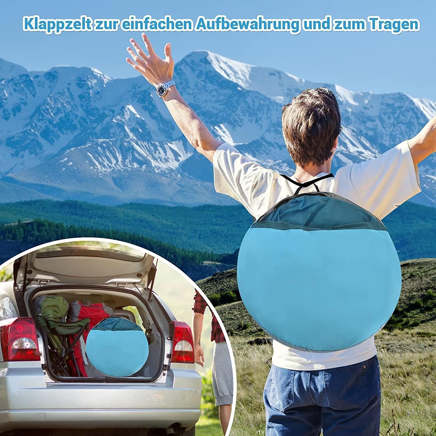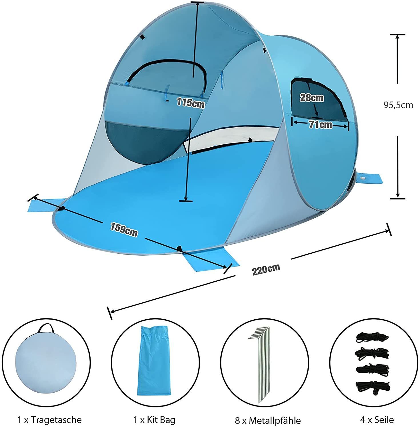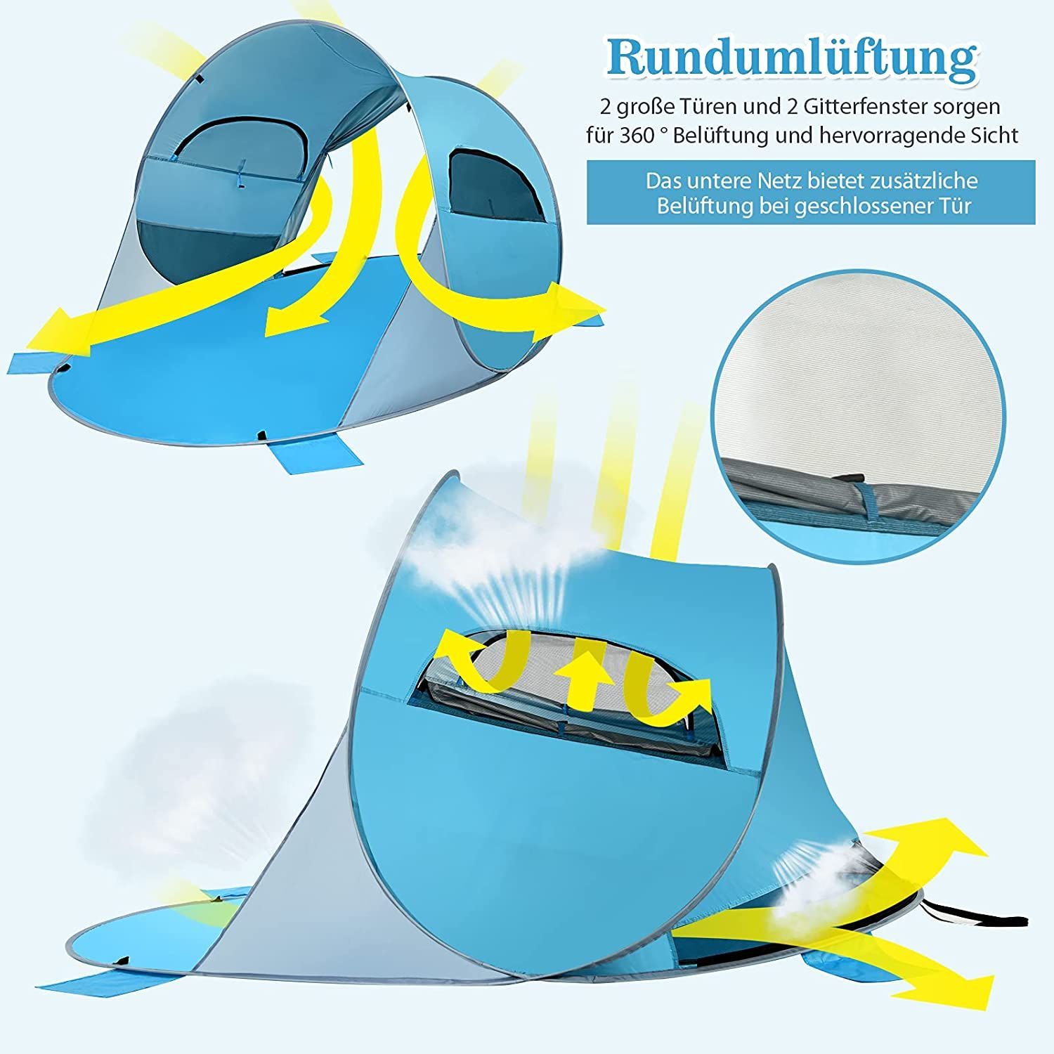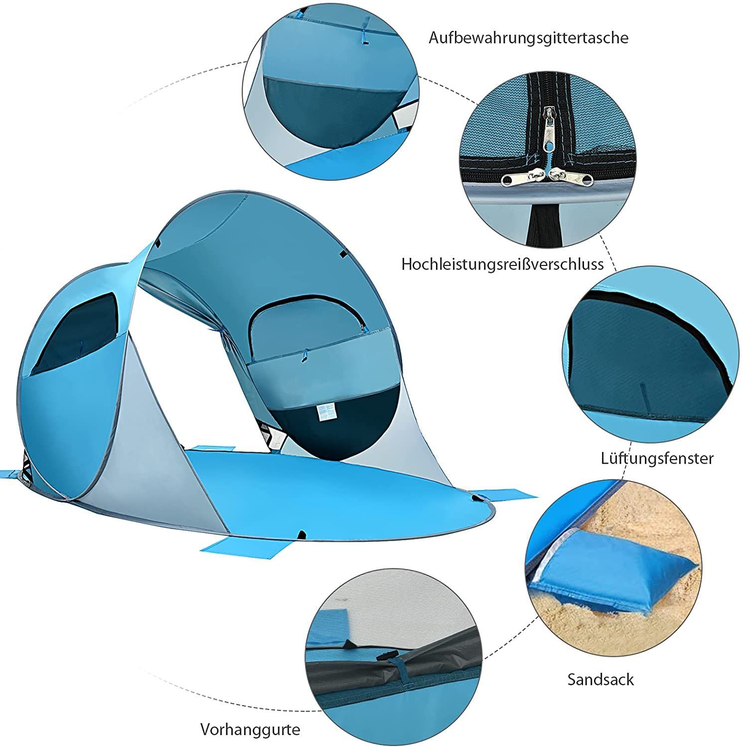 Pop Up Strandmuschel 3-4 Personen Strandzelt Sonnenschutz Wurfzelt mit Tragetasche