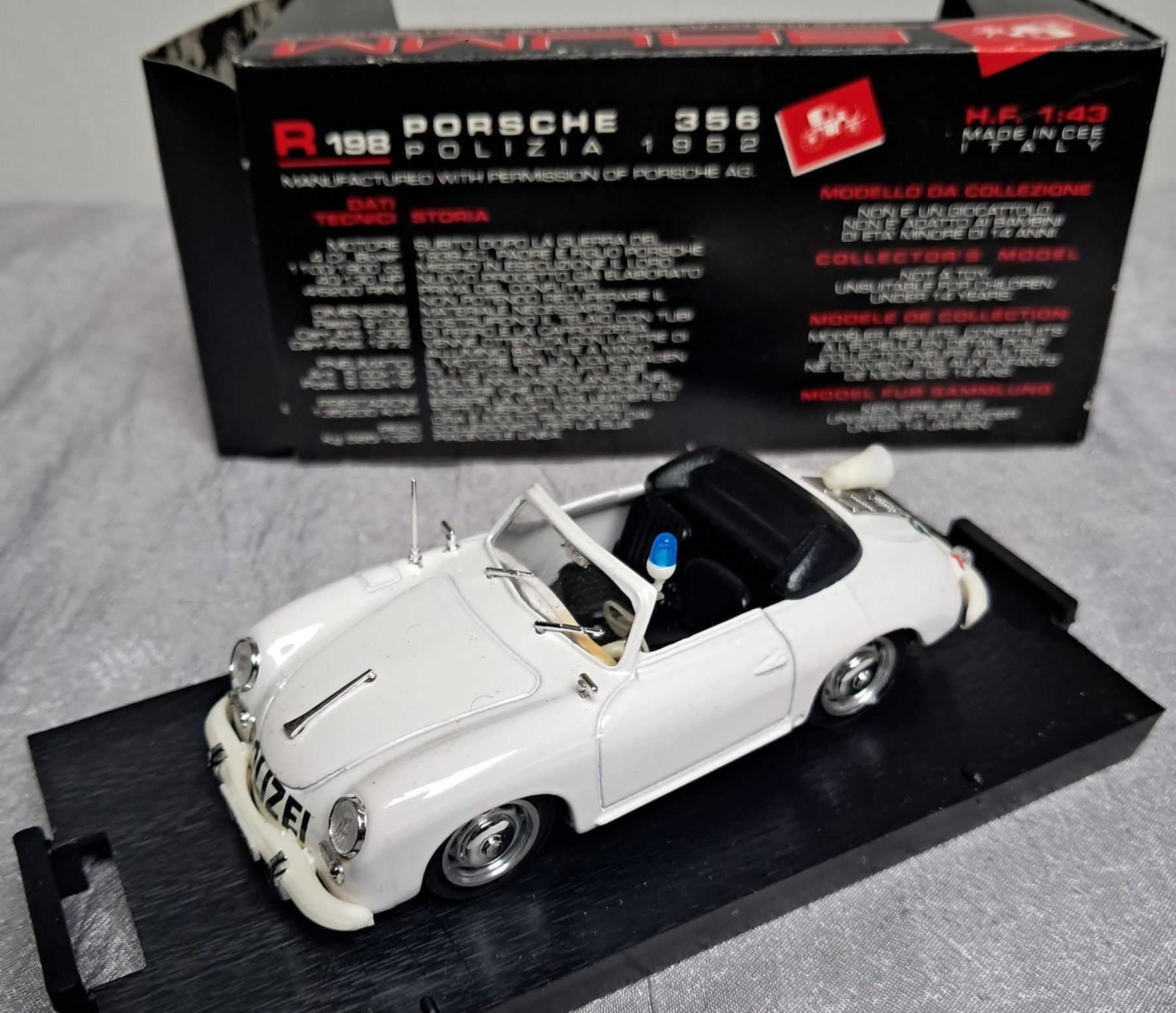 Porsche 356 von 1952 weiß - Polizei Modell von der Firma Brumm im Maßstab 1:43 originalverpackt, Verpackung mit minimalen Lagerspuren
