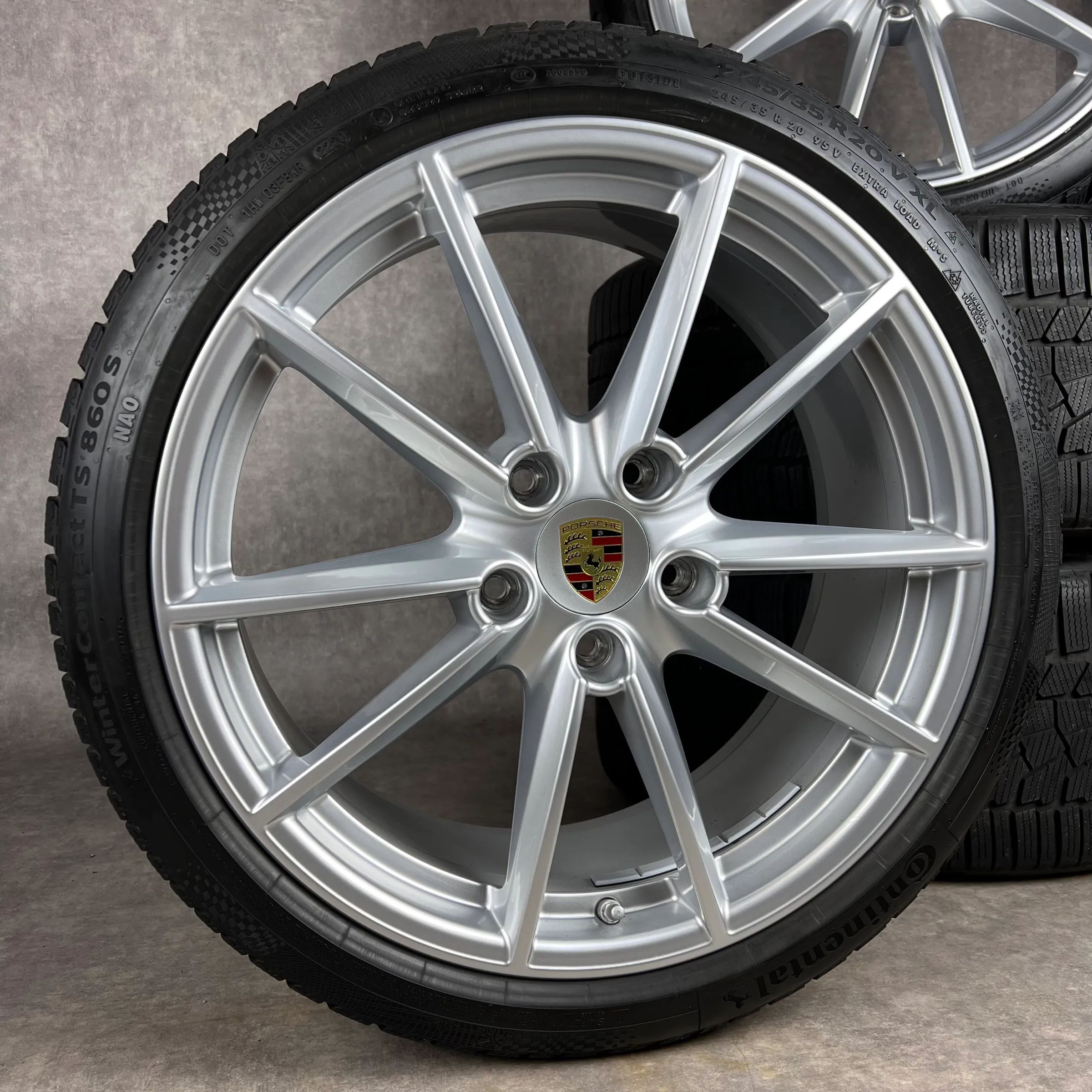 4x Original PORSCHE 911 (992) 20 21 Carrera S Felgen Winterkompletträder silber Original Lack VA Dimension: 8,5Jx20 ET53 Teilenummer: 992601025C 245 35 R20 95V Continental WinterContact TS860S NA0, gebraucht, Profil 8mm HA Dimension: 11Jx21 ET66 Teilenummer: 992601025E 295 30 R21 102V Continental Wi