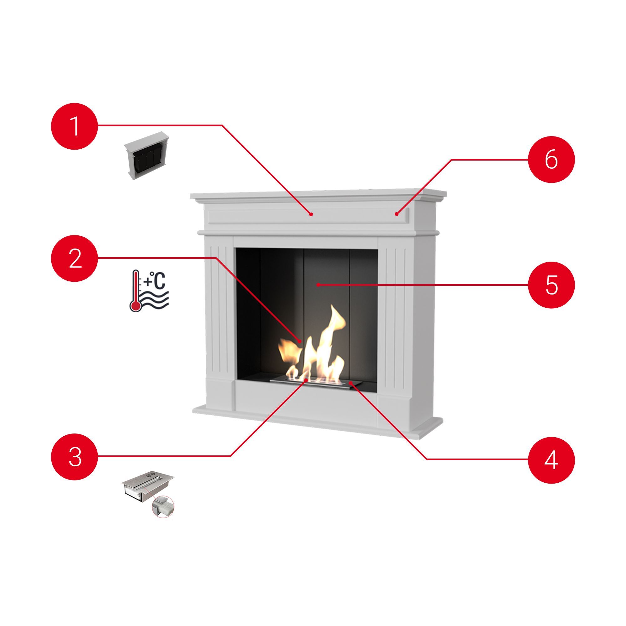 PORTAL Bioethanolkamin November TÜV WEIß Selbstmontage MIT Verglasung