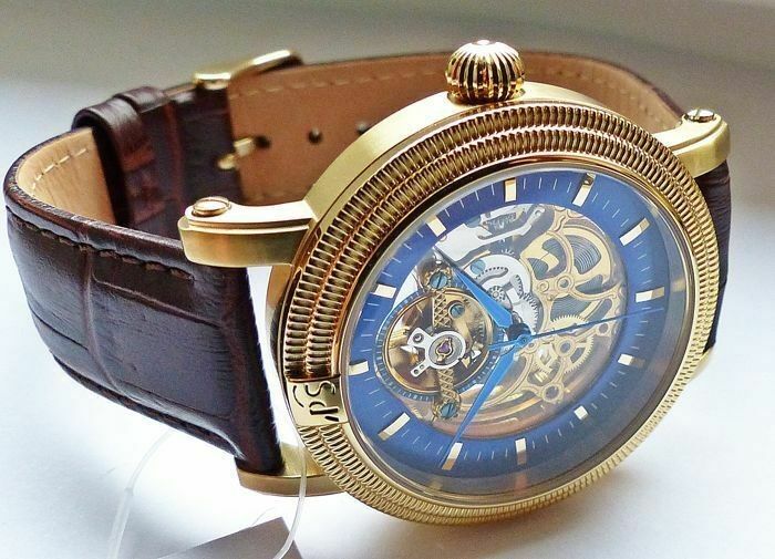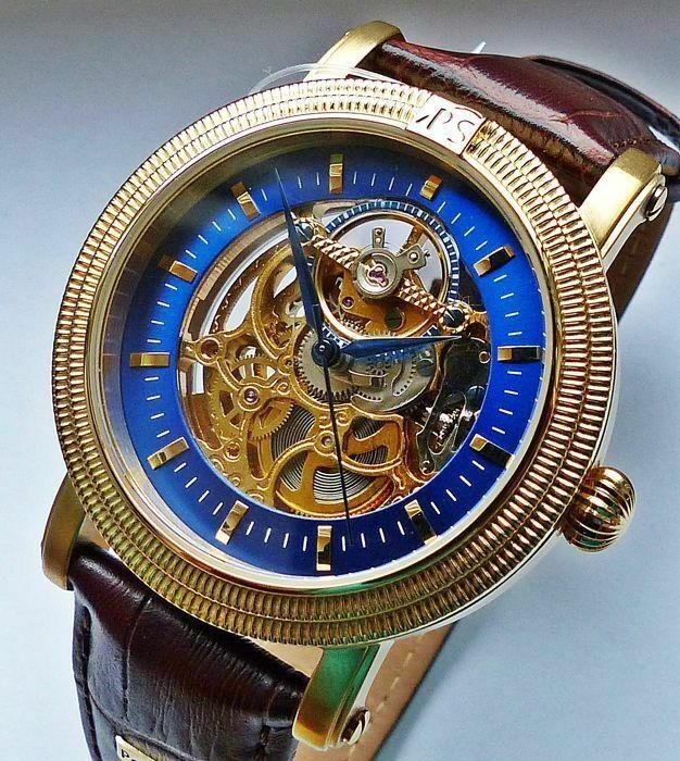 Portas - Werdau Gold-Blau Skeleton Automatic - PS01I-LTT001-01 Herren Armbanduhr