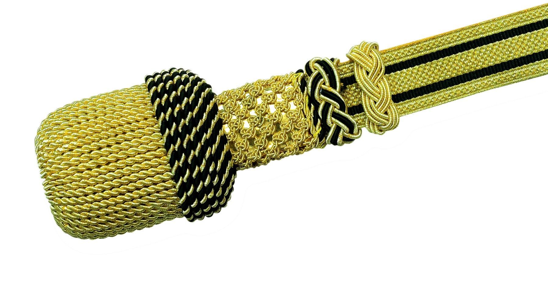 Portepee gold mit schwarz Streifen Knot - große, ovale Quaste