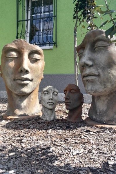 Portrait Gesicht MANN UND FRAU 115cm Rosteffekt Skulptur Steinfigur Vidroflor