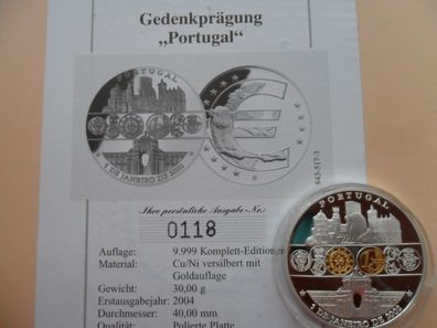 Portugal 2002 GOLD SILBER 1 Euro Erstabschlag PP * *