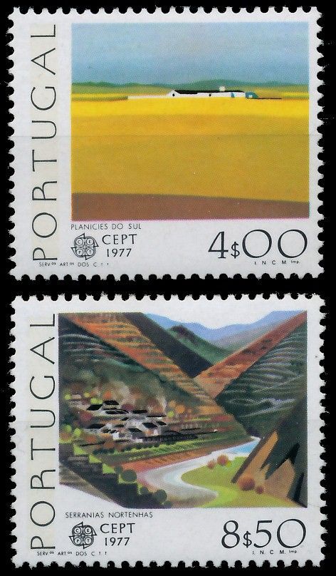 PORTUGAL 1977 Nr 1360y-1361y postfrisch Ausgabe Europa Gemeinschaftsausgaben CEPT 1977 mit Phosphorstreifen über dem Wort PORTUGAL 3.41€ incl. MwSt: Differenzbesteuert zzgl. Versandkosten Bestell-Nr.: S1776DA Katalog-Nr: MICHEL (1360 y - 1361 y) Katalogpreis: 9 EUR Qualität: Normal Erhaltung: P