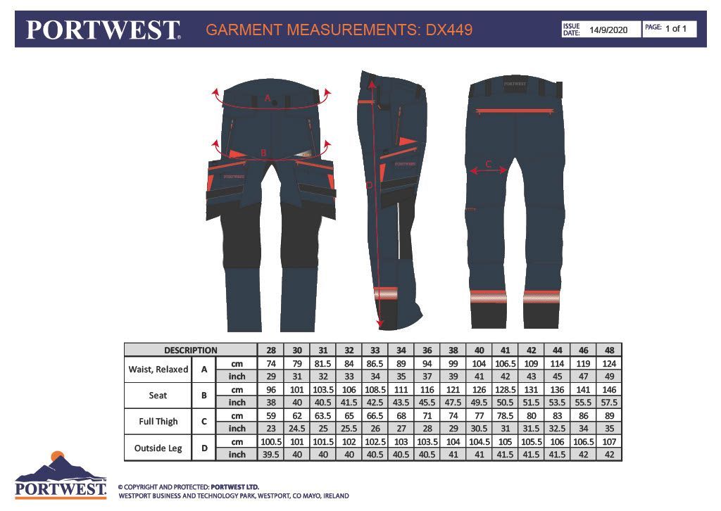 Portwest® DX4 Arbeits Bundhose Stretchgewebe DX449 Reflexstreifen