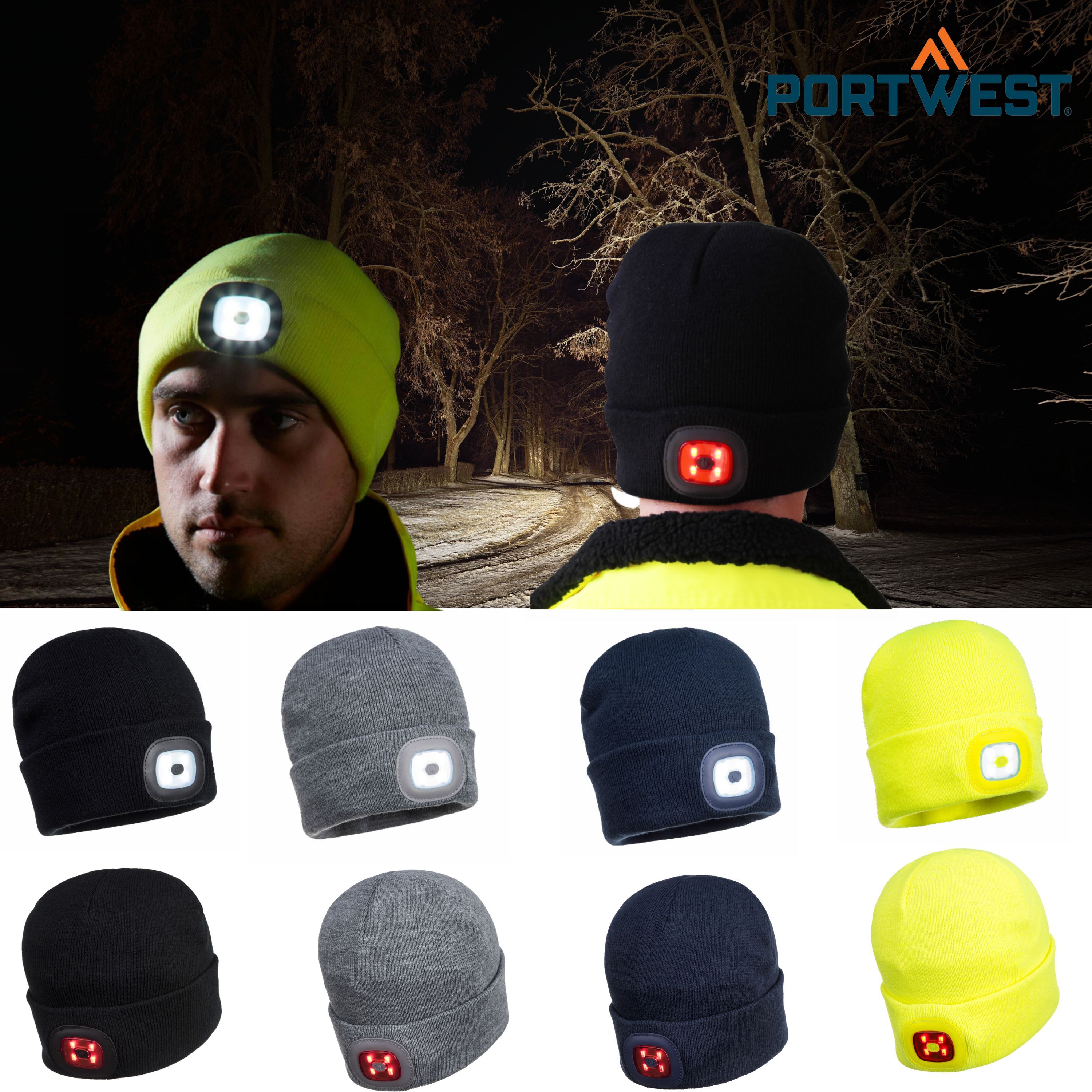 PORTWEST® Mütze B028 mit wiederaufladbaren LED - Leuchten Vorn und Hinten