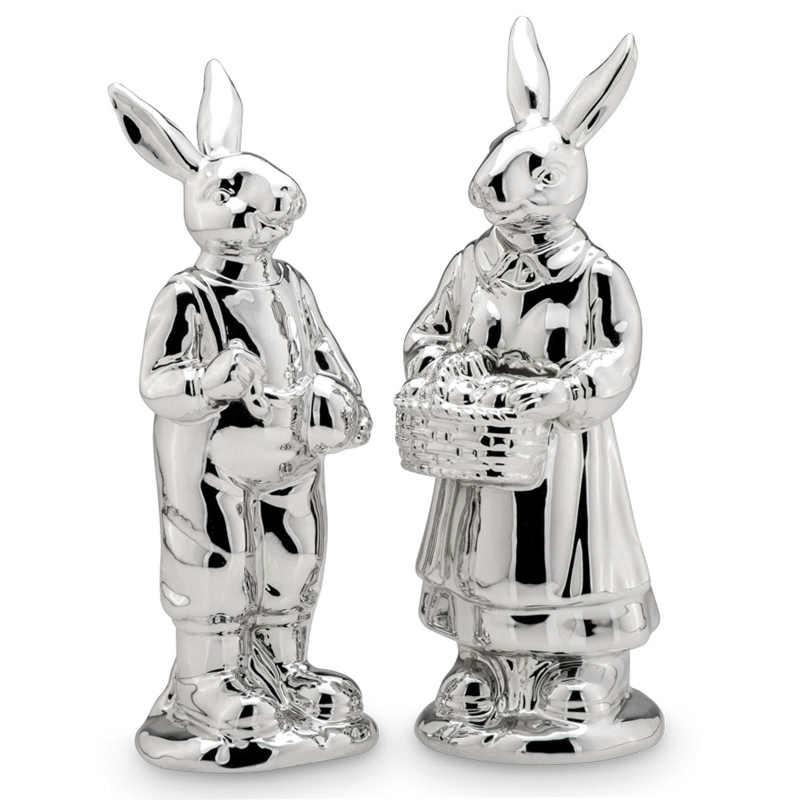 Porzellan Deko Hasen Paar Hasenmann & Hasenfrau 2-teilig Hasenfiguren Set Ostern