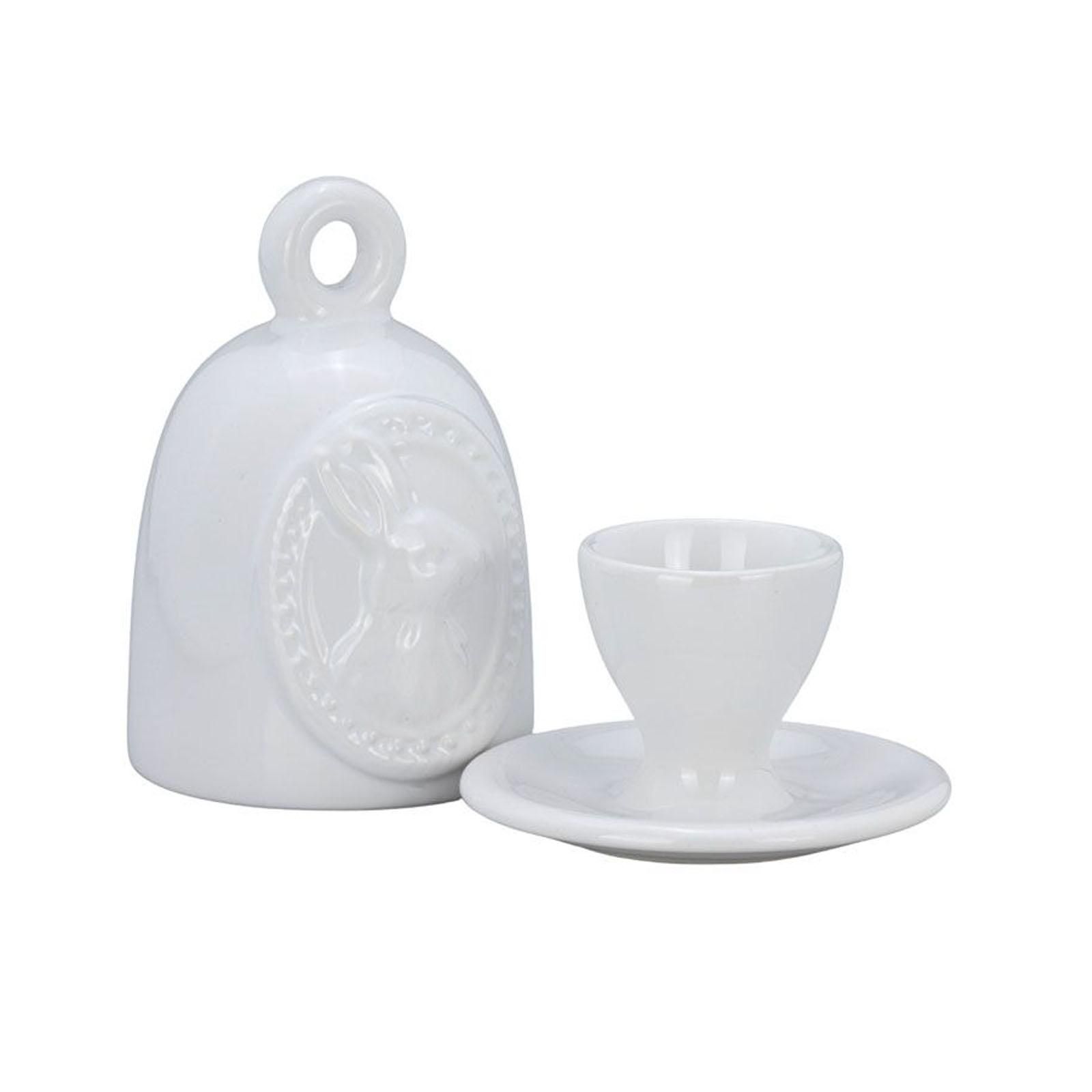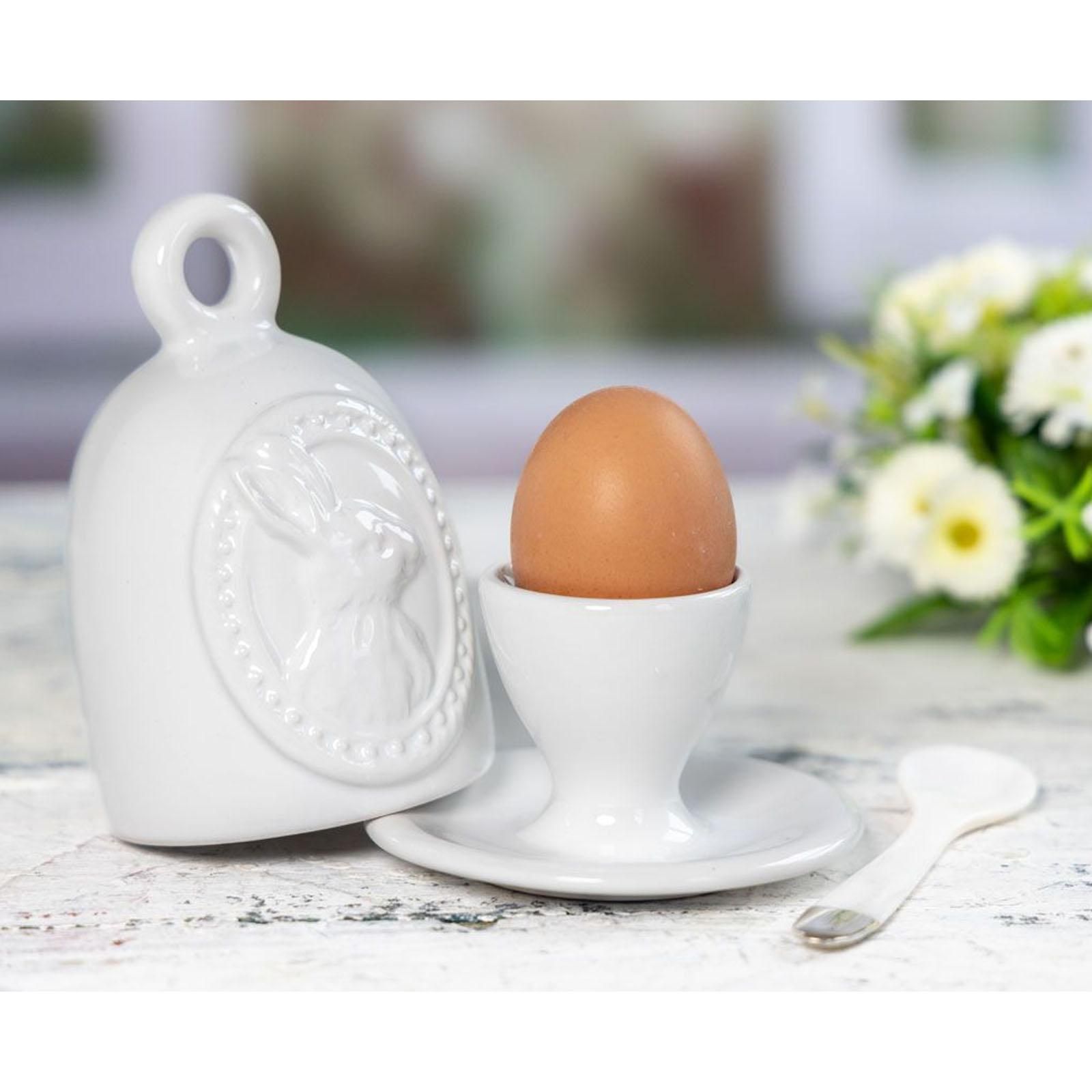 Porzellan Eierbecher & Haube 13cm weiß Hasenmotiv Frühstücks-Eierhalter & Deckel