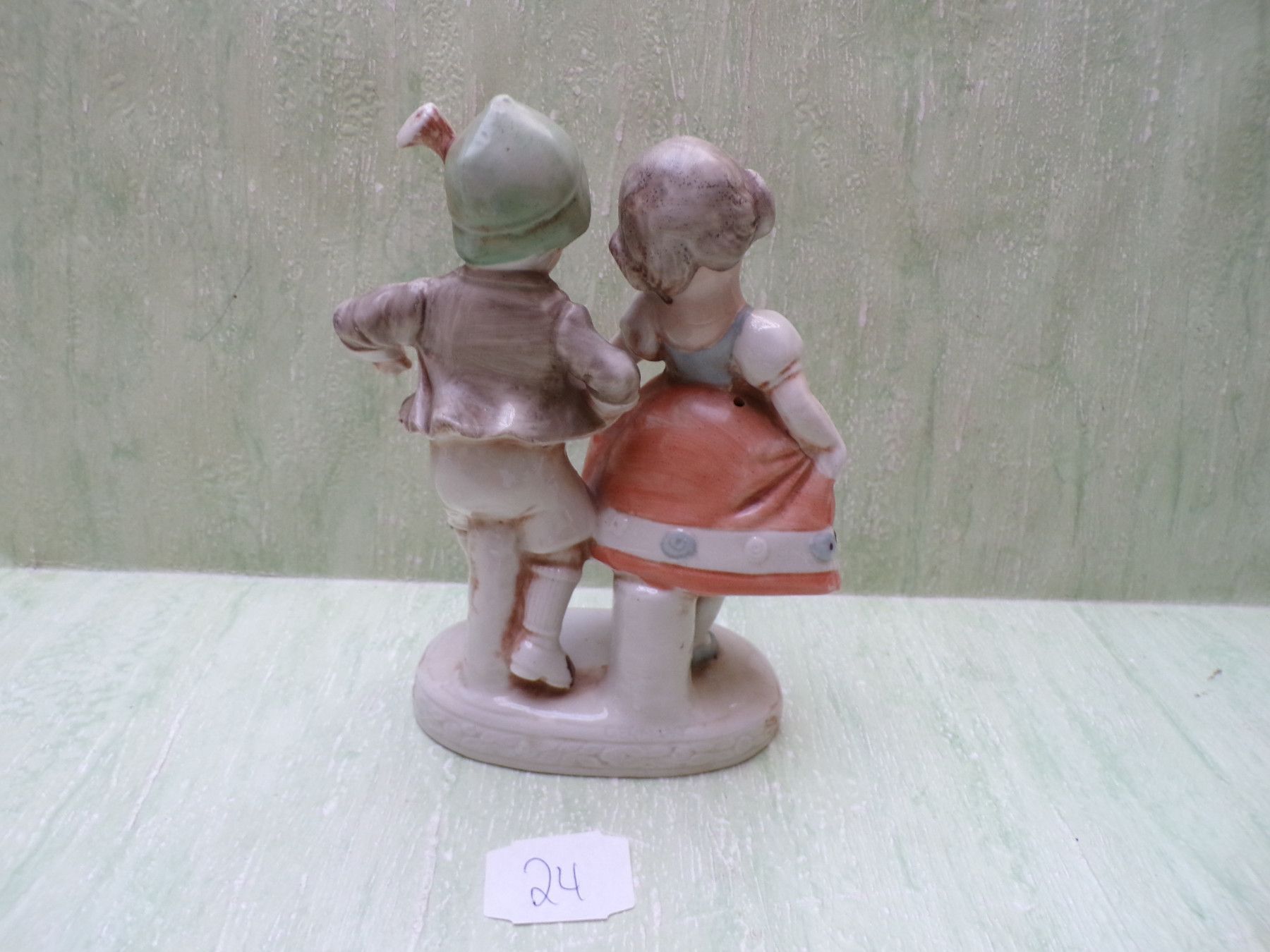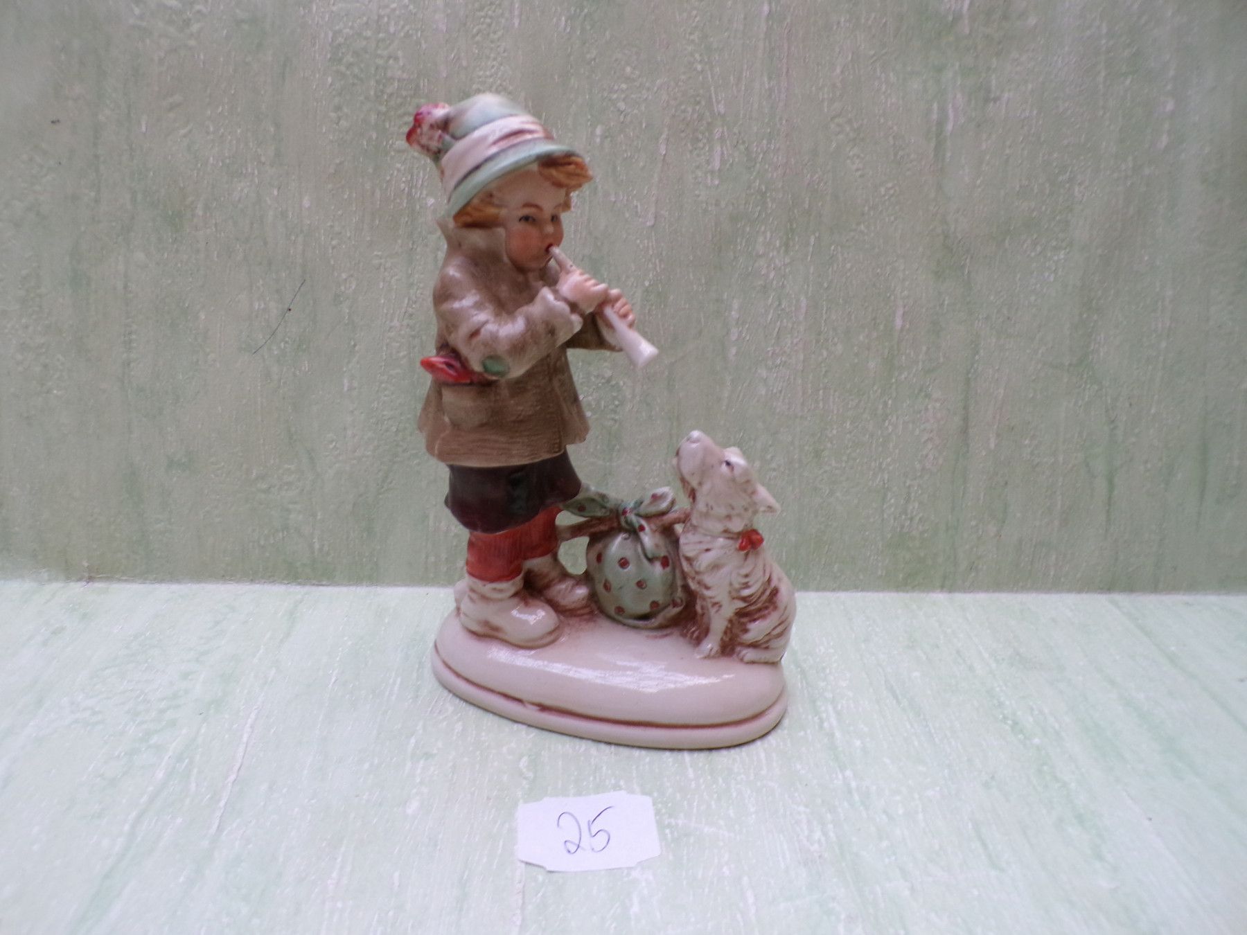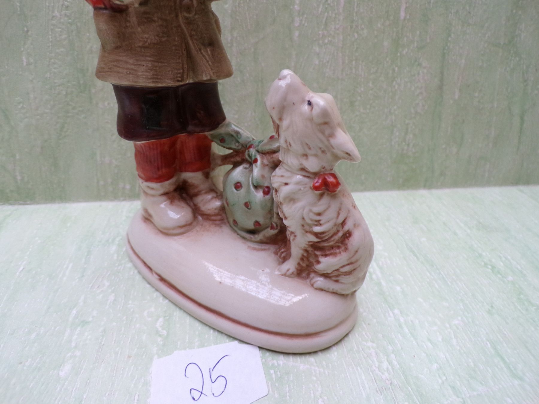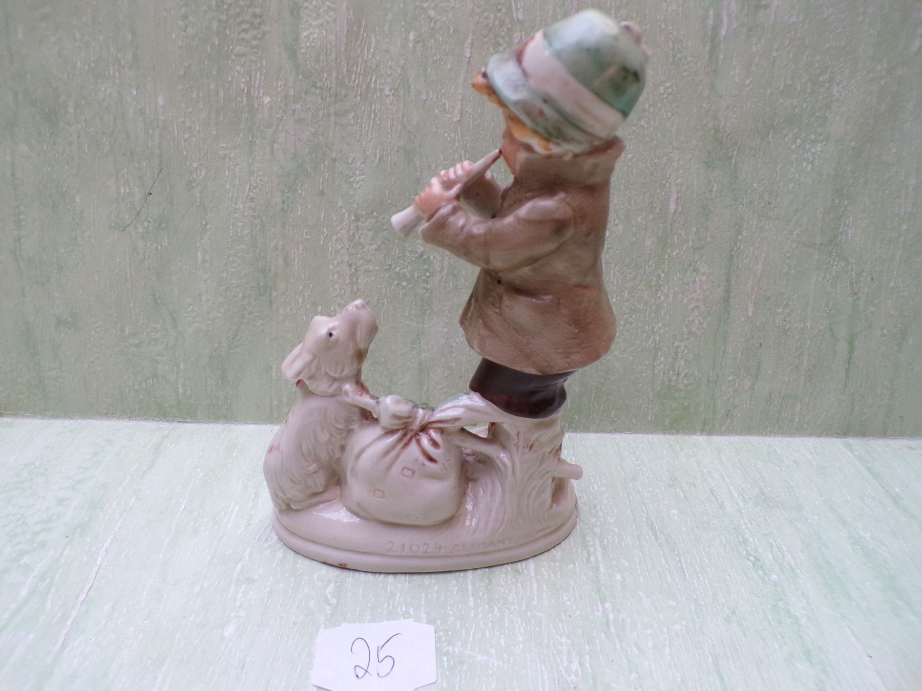 24: tanzendes Paar "unleserlich" ca 15,5cm, 25: flötender Wanderer 21024 Germany ca 15cm, 26: Bub mit Hund 20534 Germany ca 16cm