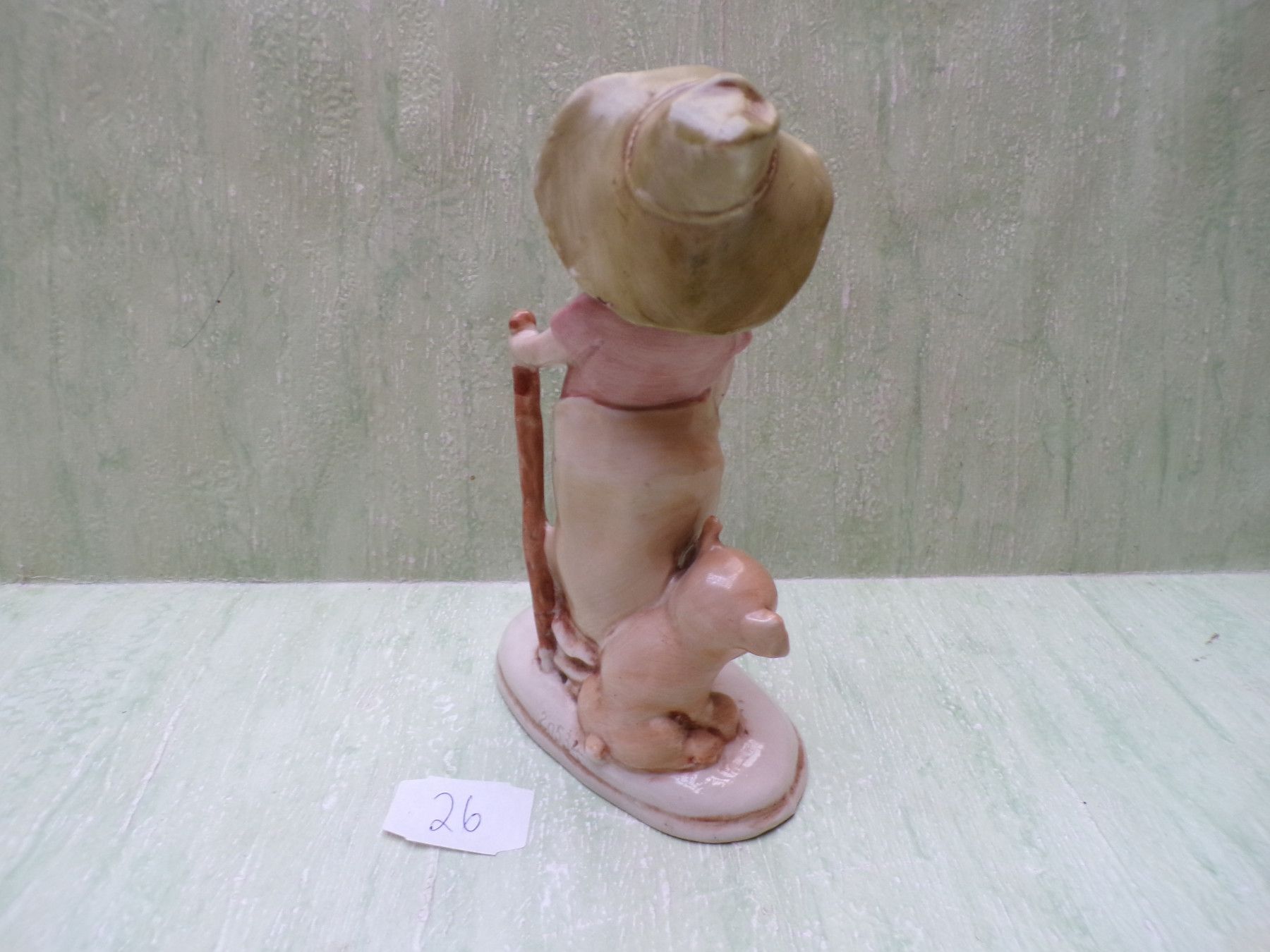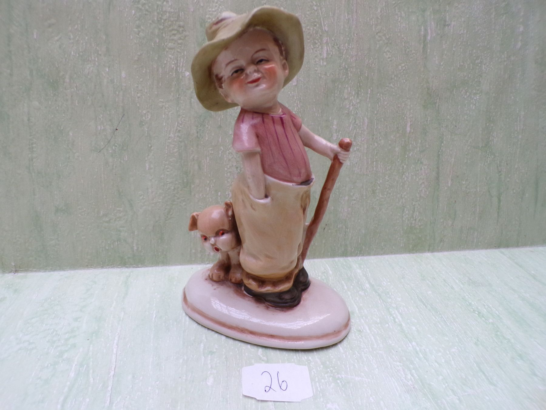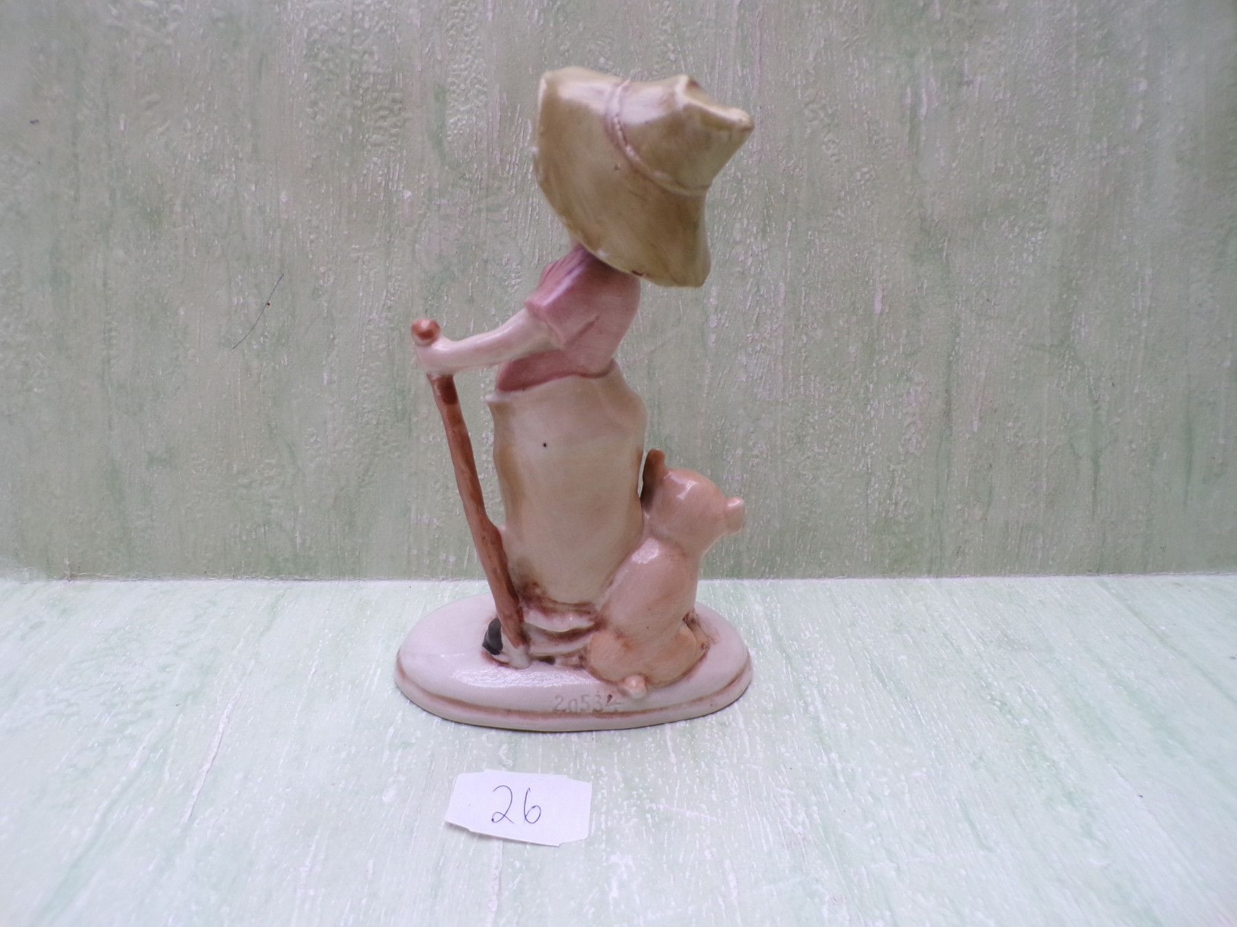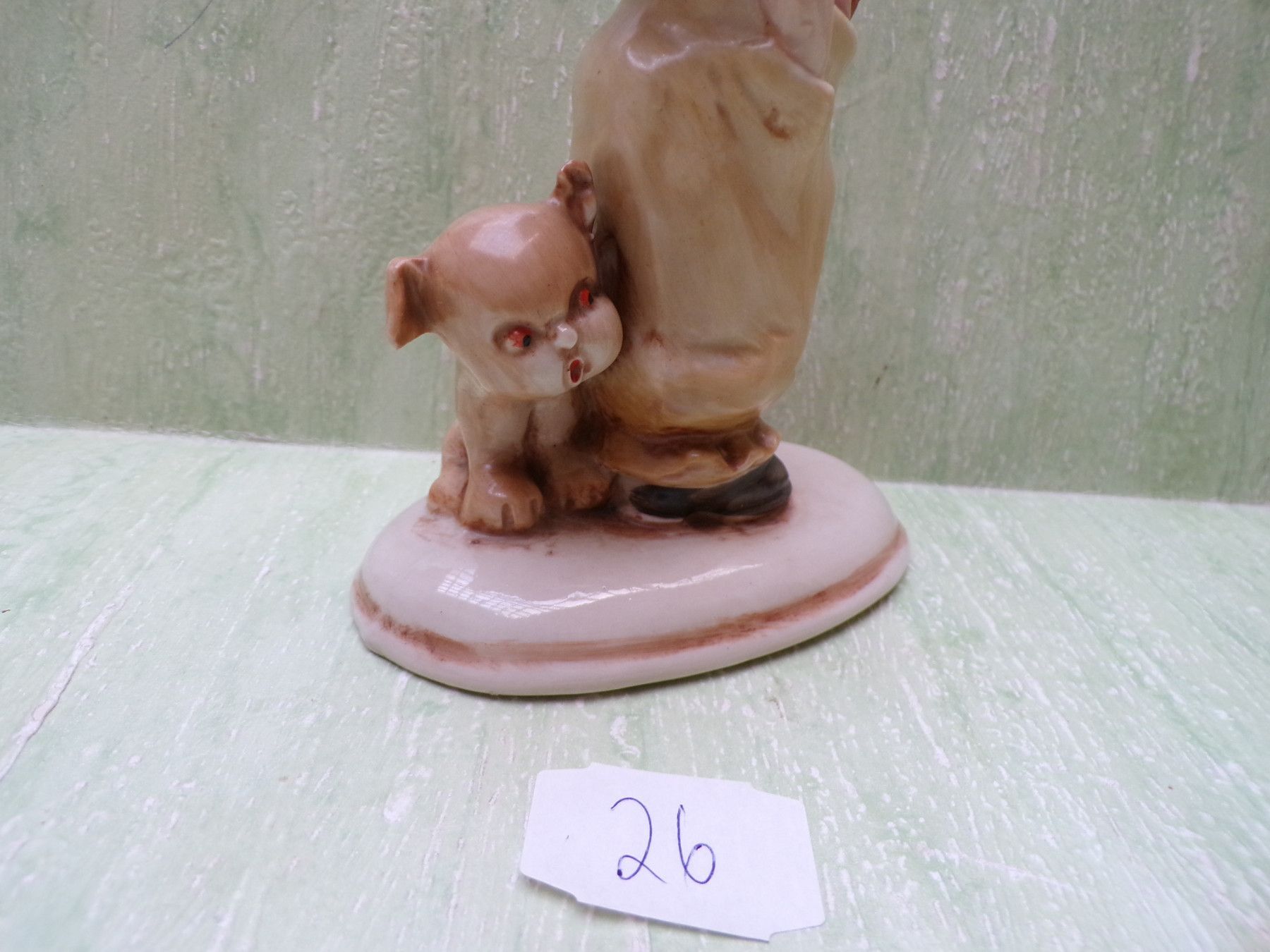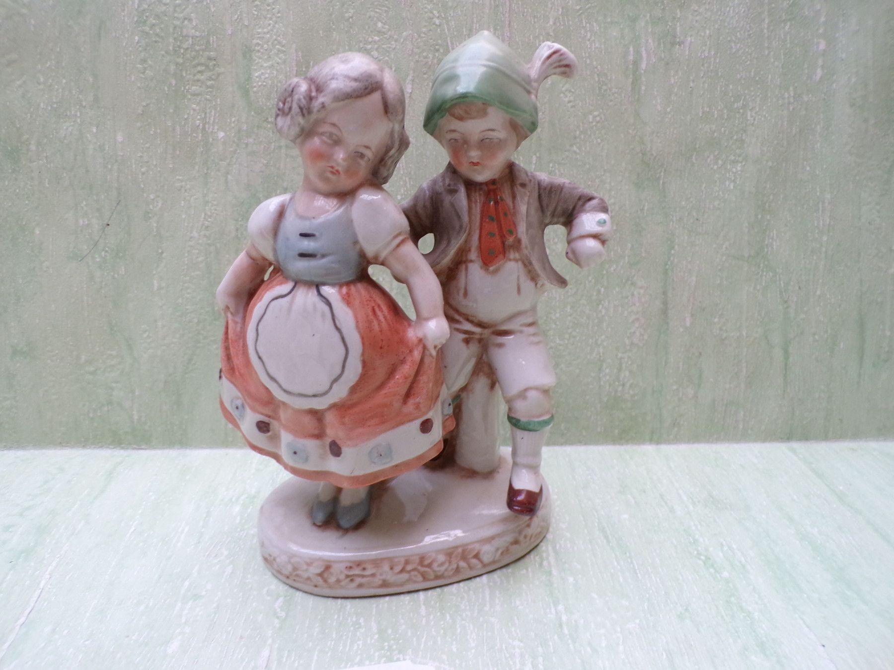 24: tanzendes Paar "unleserlich" ca 15,5cm, 25: flötender Wanderer 21024 Germany ca 15cm, 26: Bub mit Hund 20534 Germany ca 16cm