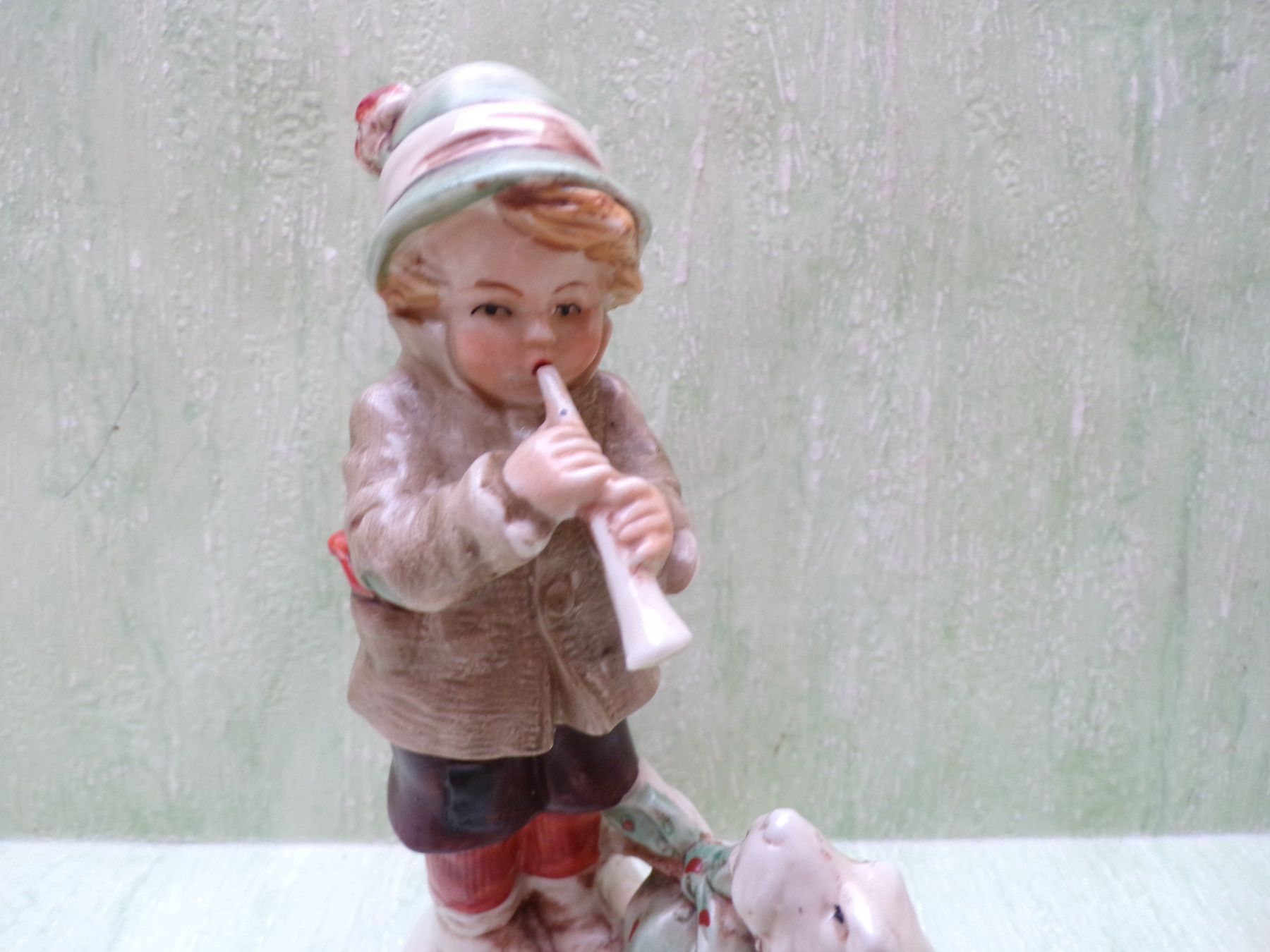Porzellan Figur Gräfenthal Germany Kinder Flötenspieler Wanderbub
