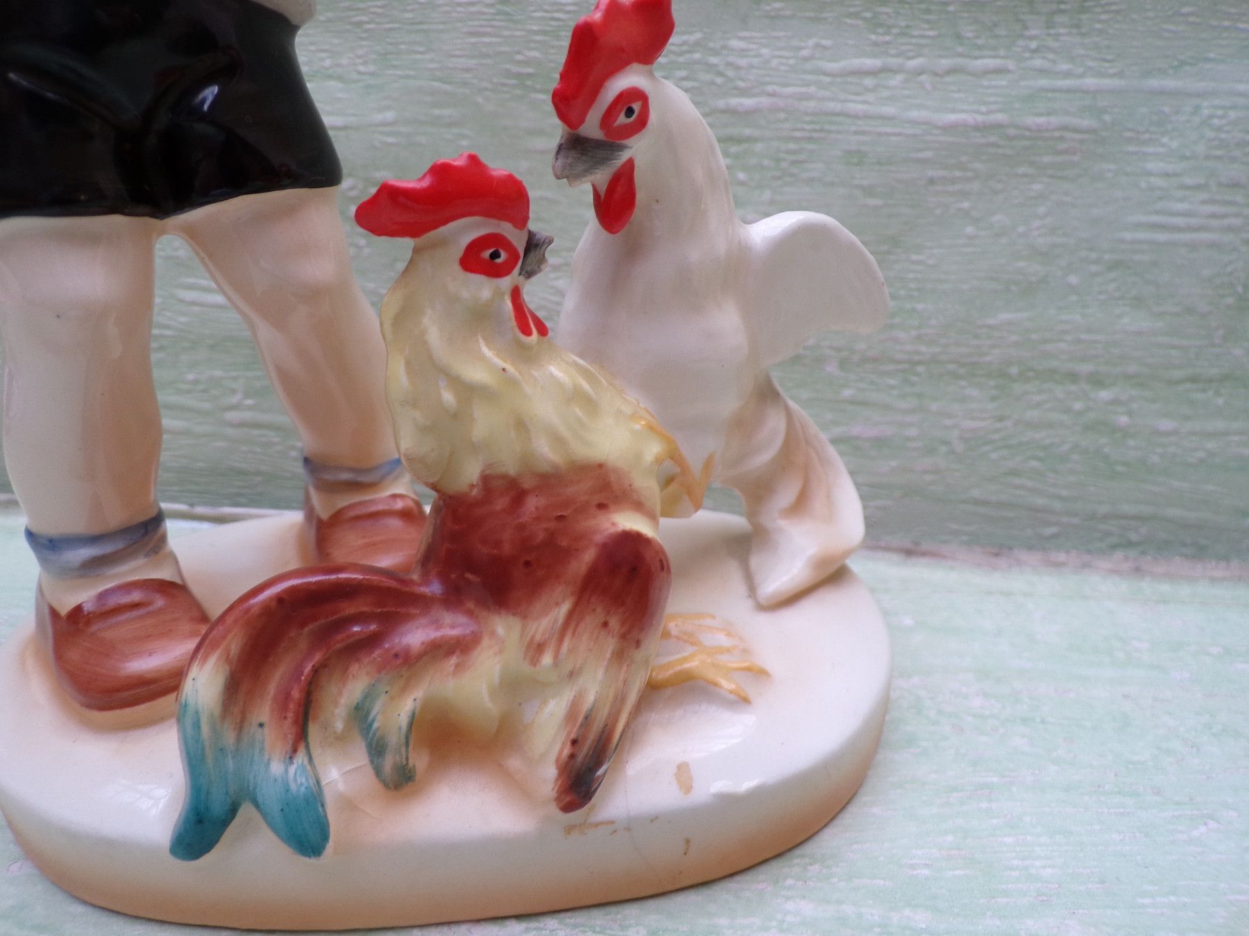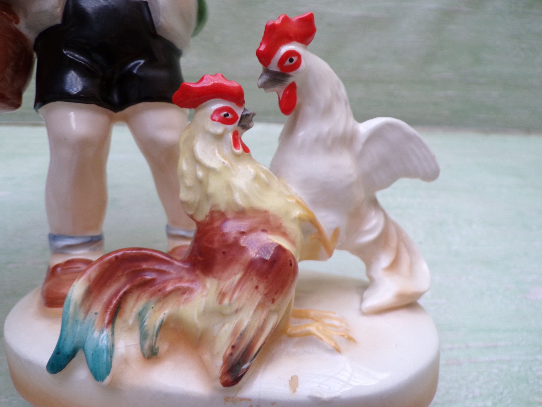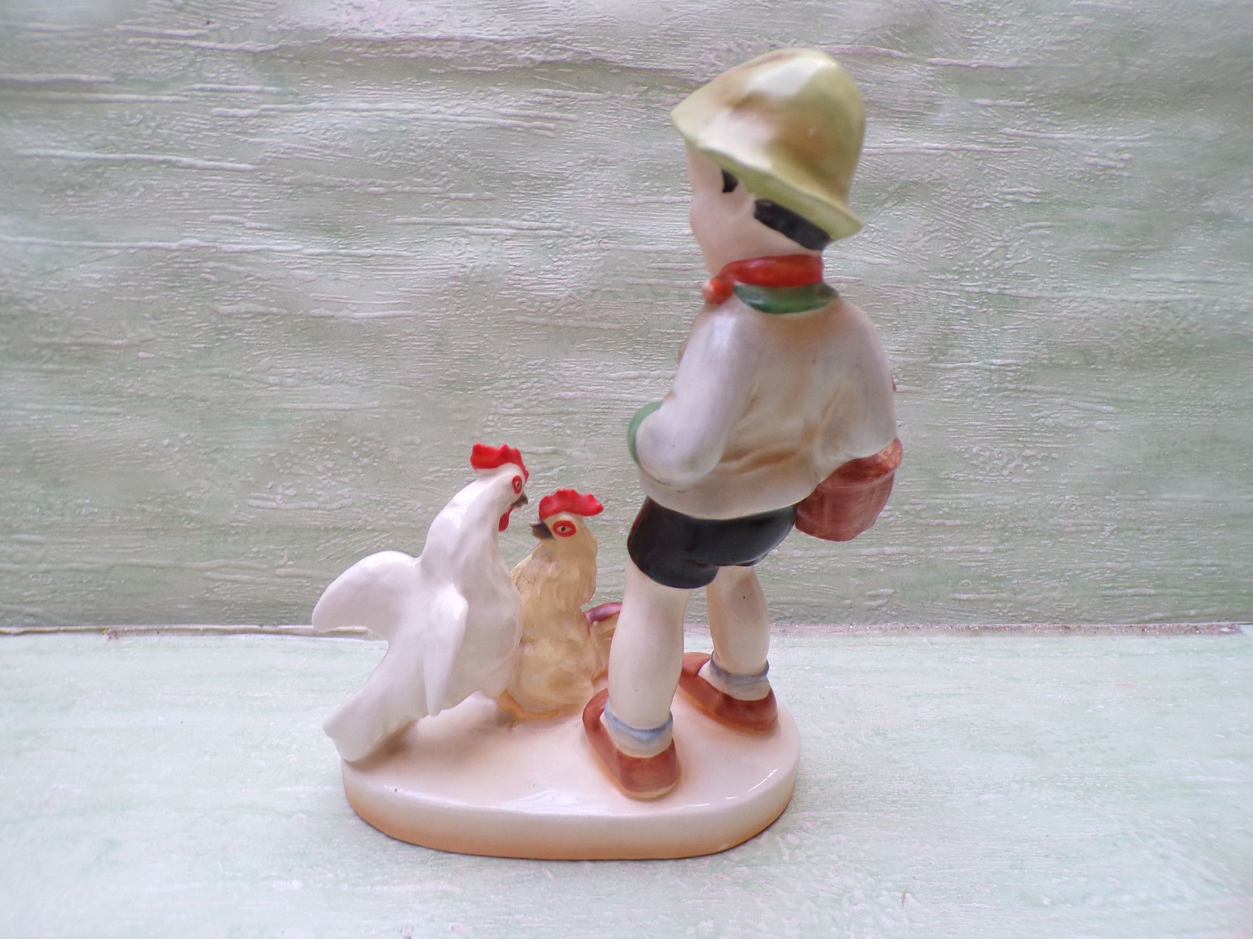 ... Erinnerungen ..... . . ohne Nr , ohne Bodenmarke . Kinderfigur mit Hähnen . Zustand : Riß im Sockel , ansonsten einwandfrei & unbeschädigt . . Fotos sind Bestandteil der Beschreibung Bitte berücksichtigen Sie , daß die Farben Foto Original abweichen können - Danke !